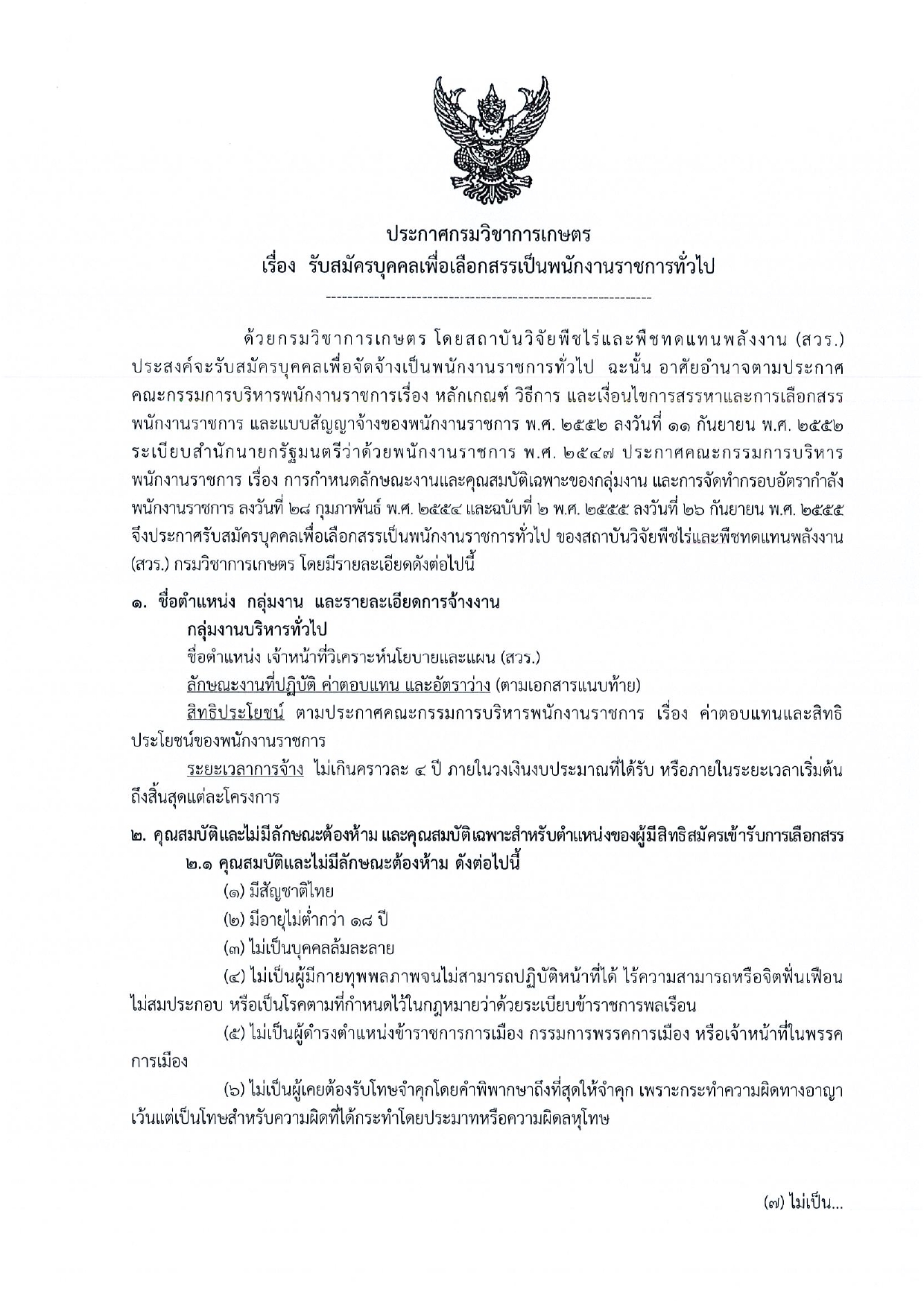 ที่ ฝ่ายบริหารทั่วไป สถาบันวิจัยพืชไร่และพืชทดแทนพลังงาน (สวร.) กรมวิชาการเกษตร (ภายในมหาวิทยาลัยเกษตรศาสตร์ บางเขน)