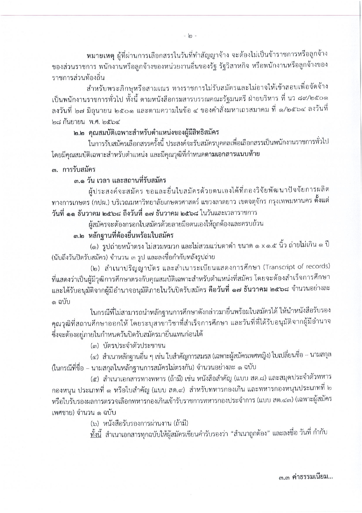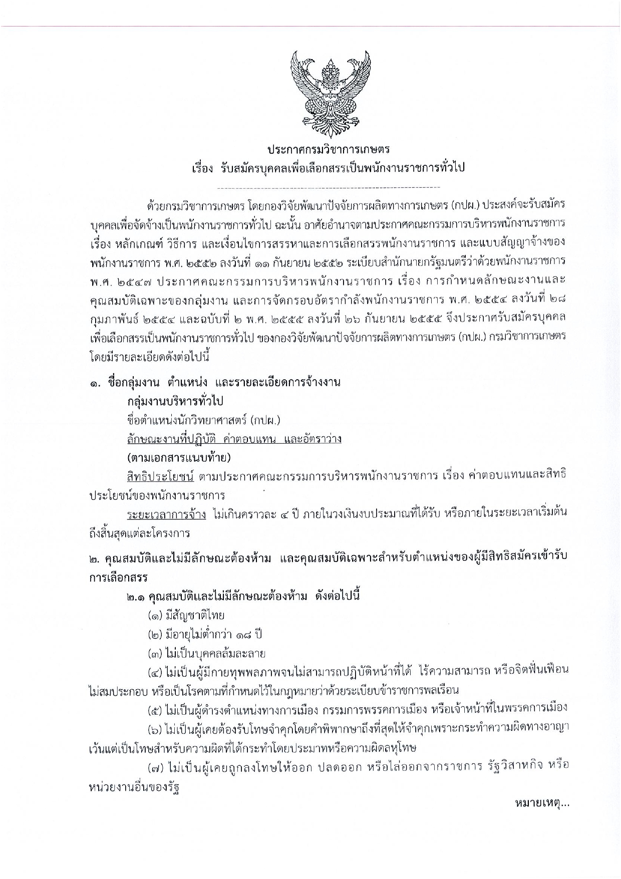 สถานที่ปฏิบัติงาน: ส่วนกลาง (กรุงเทพมหานคร – ในบริเวณมหาวิทยาลัยเกษตรศาสตร์ บางเขน)