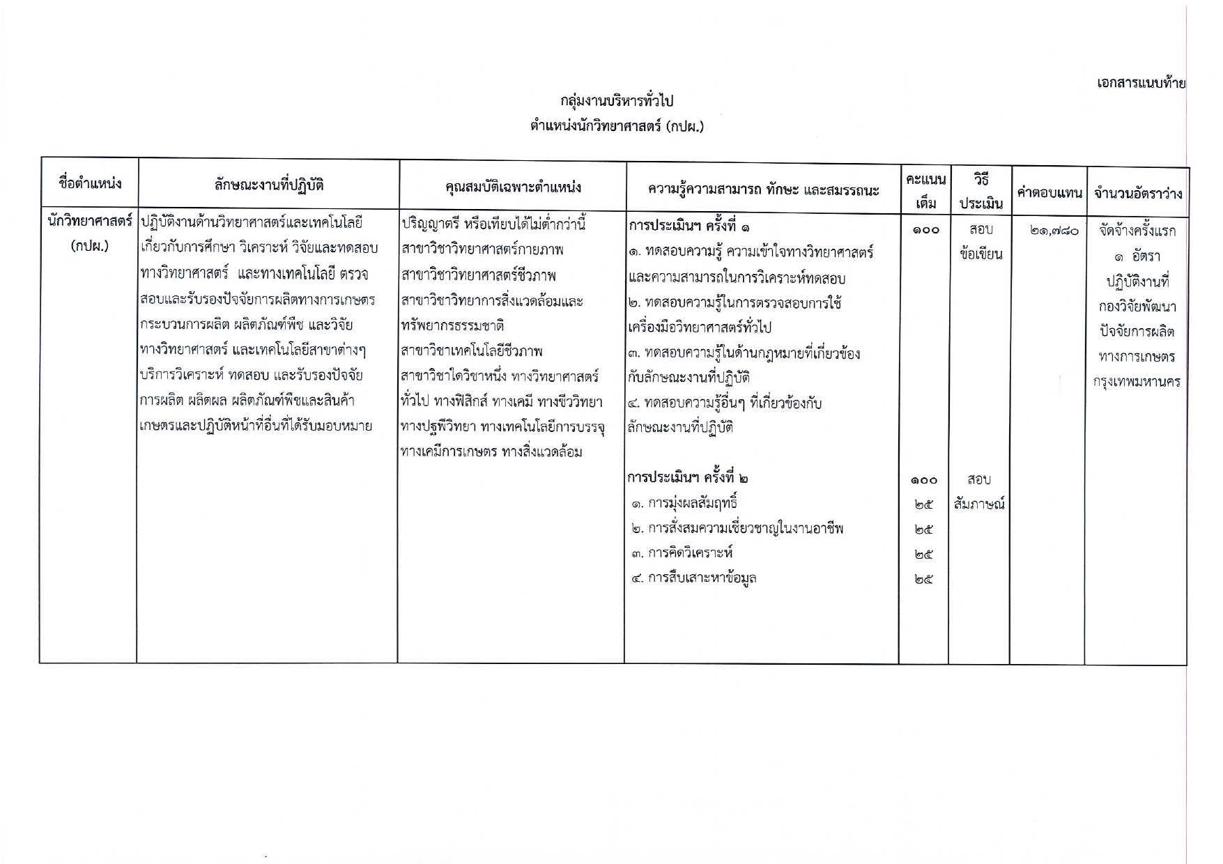 ตำแหน่ง: นักวิทยาศาสตร์ (พนักงานราชการทั่วไป)
