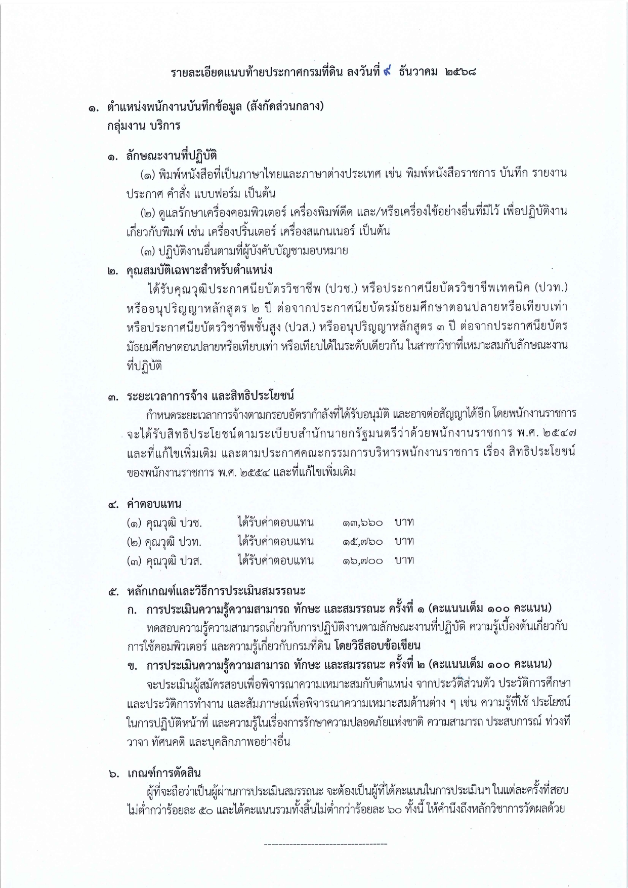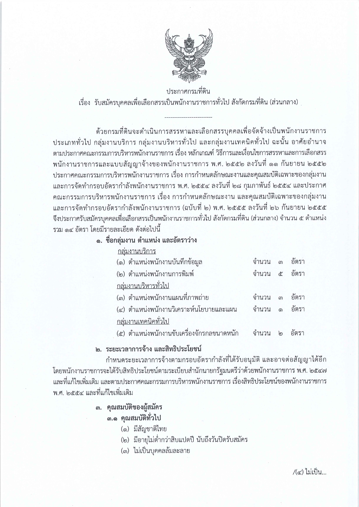 ประกาศกรมที่ดิน เรื่อง รับสมัครบุคคลเพื่อเลือกสรรเป็นพนักงานราชการทั่วไป (ส่วนกลาง)