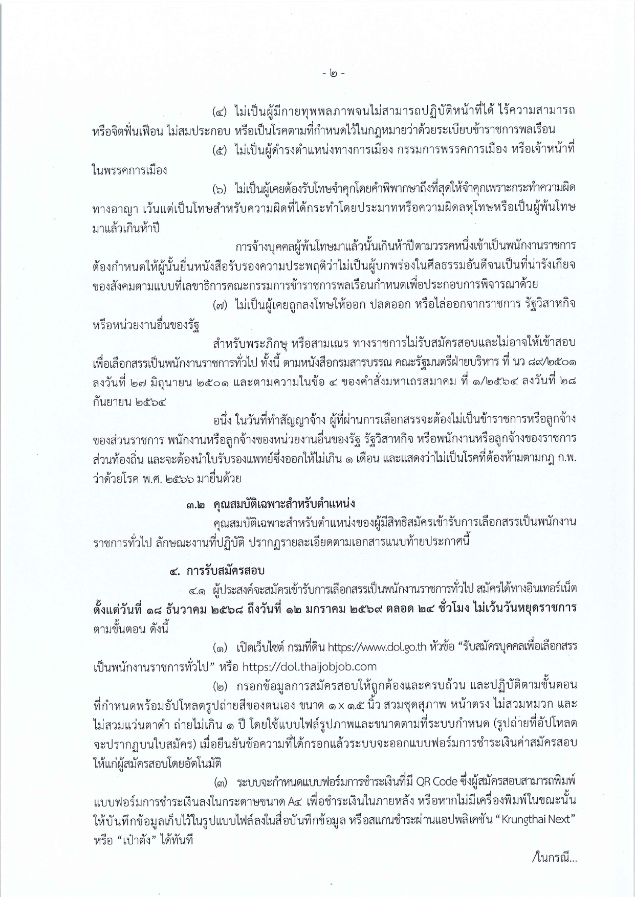 หัวข้อ “รับสมัครบุคคลเพื่อเลือกสรรเป็นพนักงานราชการทั่วไป” หรือ https://dol.thaijobjob.com