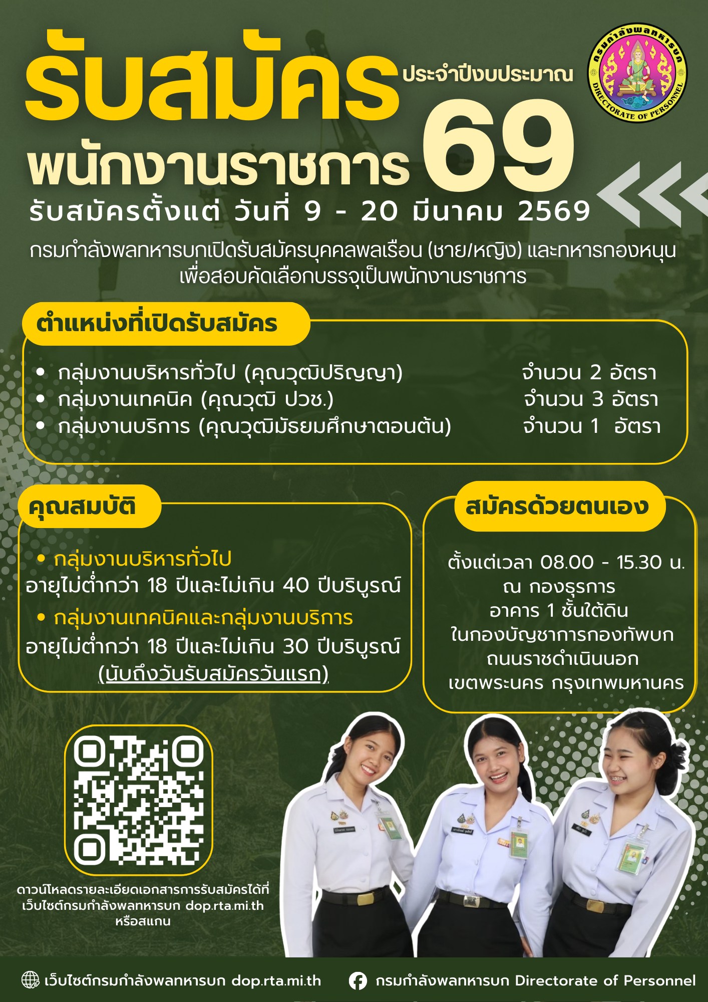 กรมกำลังพลทหารบก มีความประสงค์รับสมัครบุคคลพลเรือน (ชาย/หญิง)