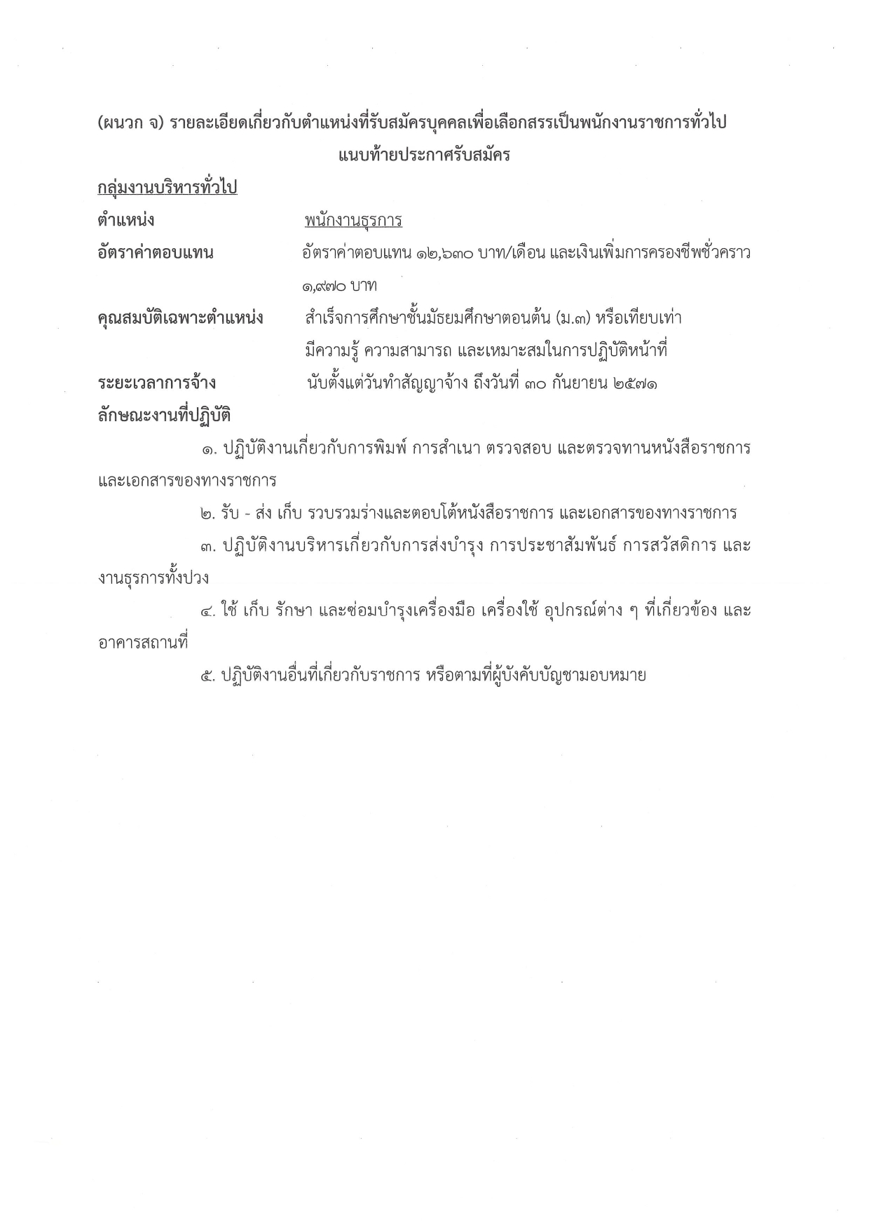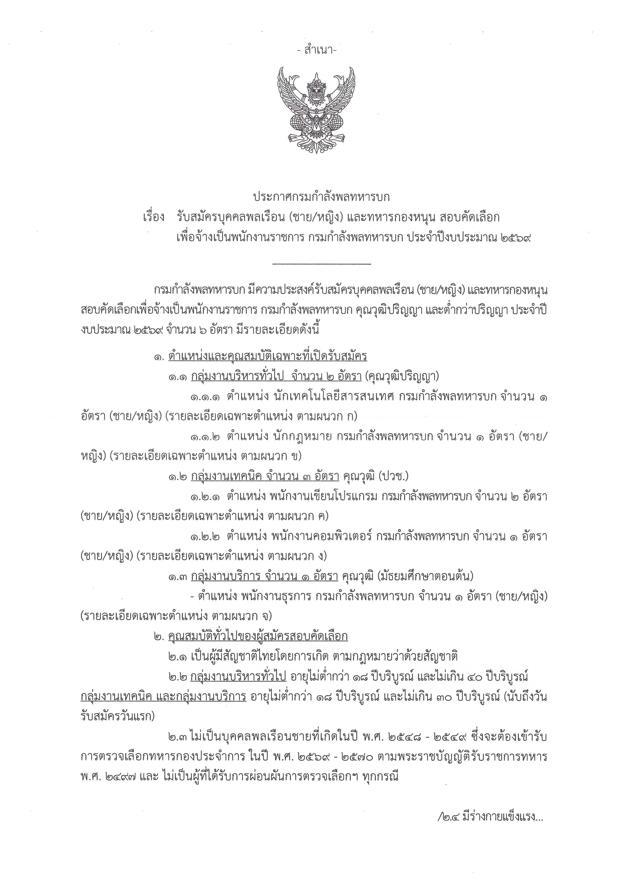 อายุ: * กลุ่มบริหารทั่วไป: 18 – 40 ปีบริบูรณ์