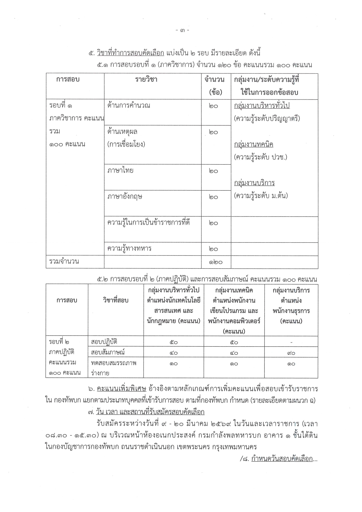 3. กำหนดการและสถานที่รับสมัคร