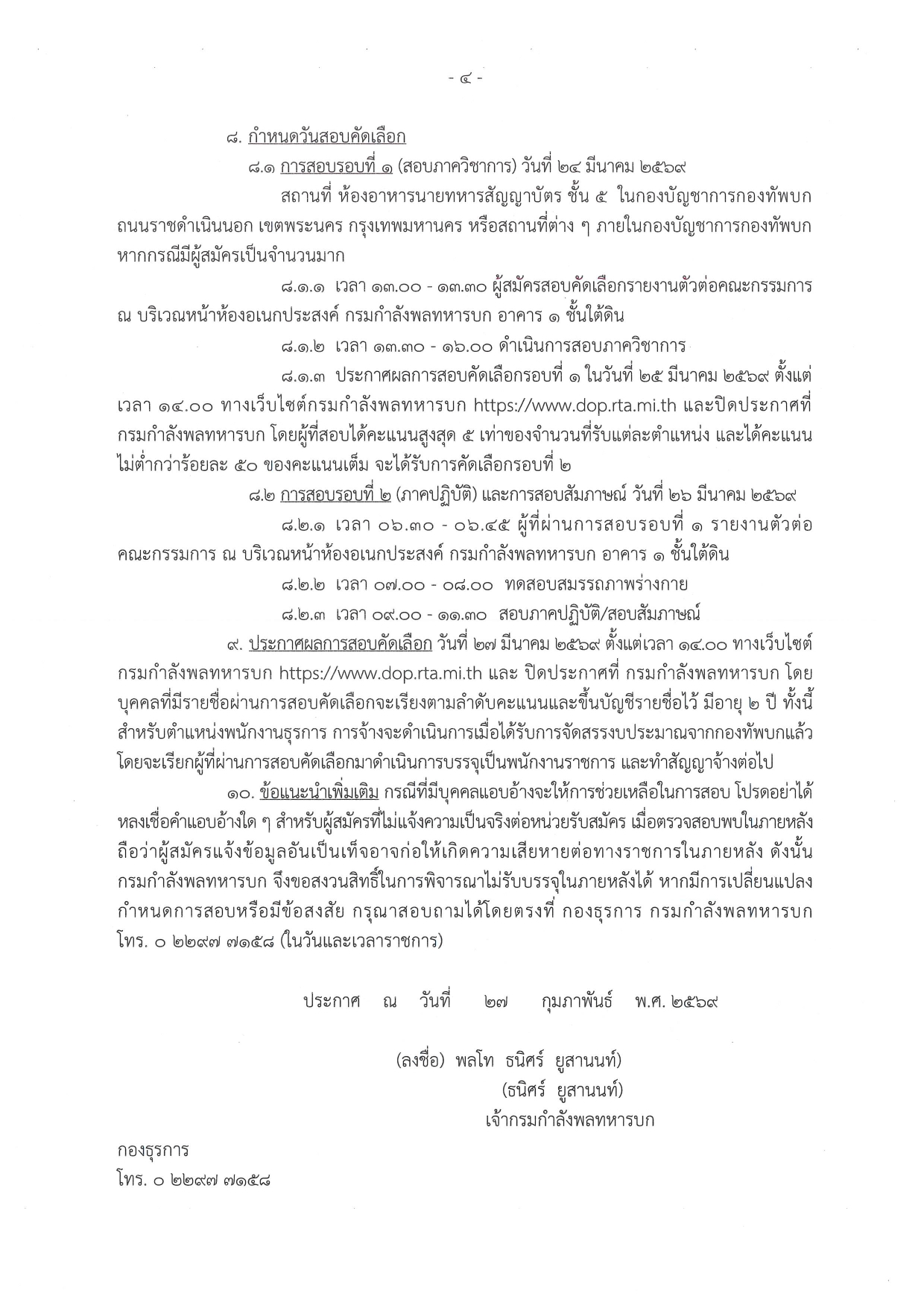 การประกาศผล: วันที่ 25 มีนาคม 2569 เวลา 14.00 น. ทางเว็บไซต์ https://dop.rta.mi.th/