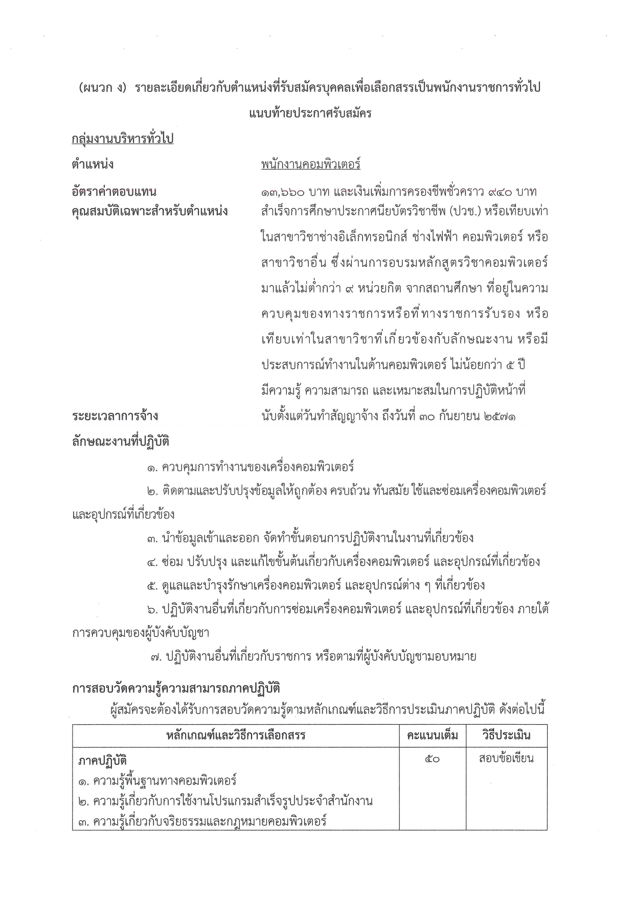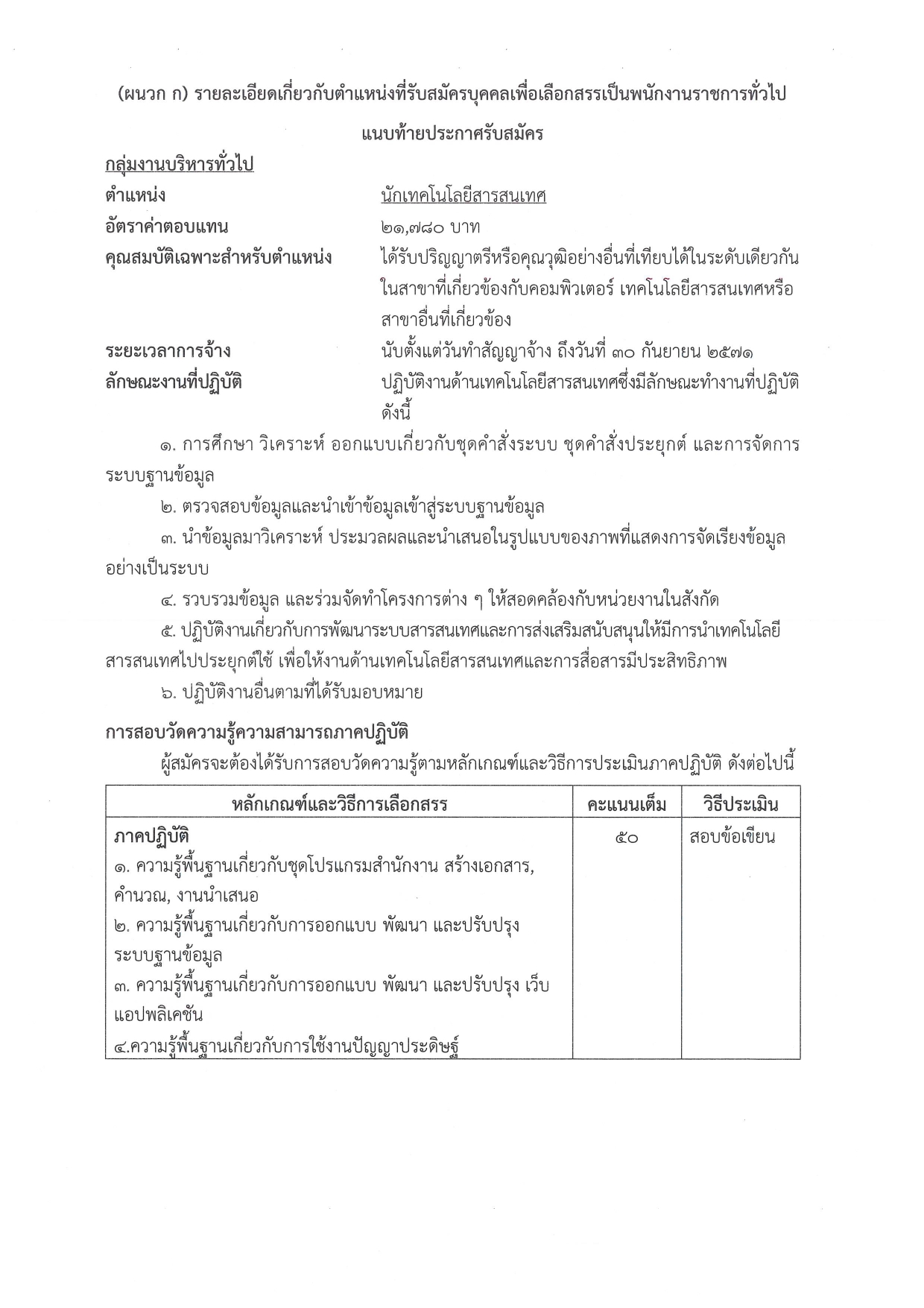 1.2 กลุ่มงานเทคนิค (ค่าตอบแทน 13,660 บาท + ค่าครองชีพ 940 บาท)