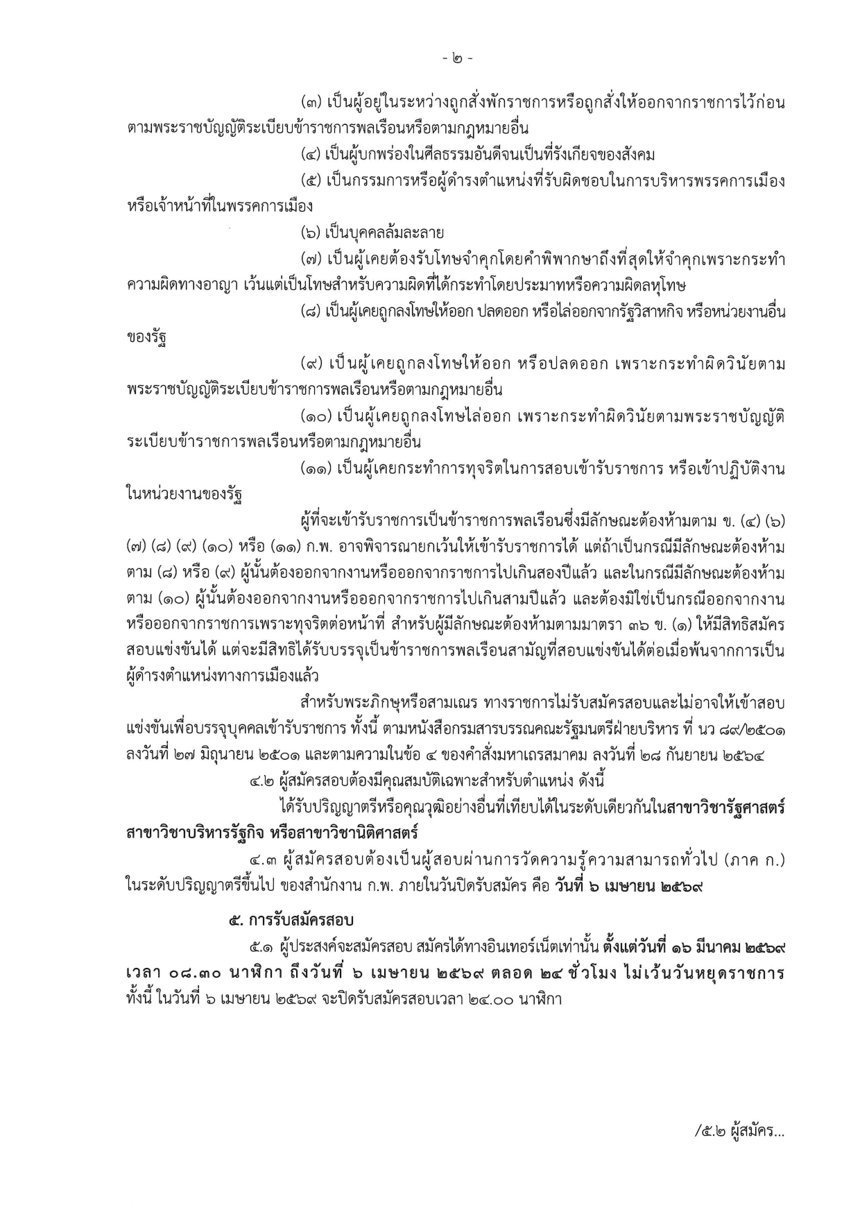 การสอบผ่านภาค ก.: ต้องเป็นผู้สอบผ่านการวัดความรู้ความสามารถทั่วไป (ภาค ก.) ของสำนักงาน ก.พ. ในระดับปริญญาตรีขึ้นไป ภายในวันที่ 6 เมษายน 2569
