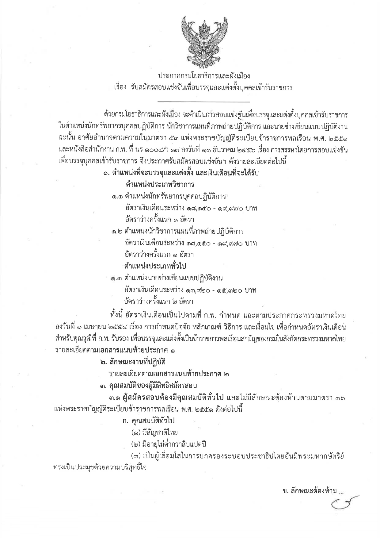 คลิกที่นี่เพื่ออ่าน ประกาศกรมโยธาธิการและผังเมือง เรื่อง รับสมัครสอบแข่งขันเพื่อบรรจุและแต่งตั้งบุคคลเข้ารับราชการ