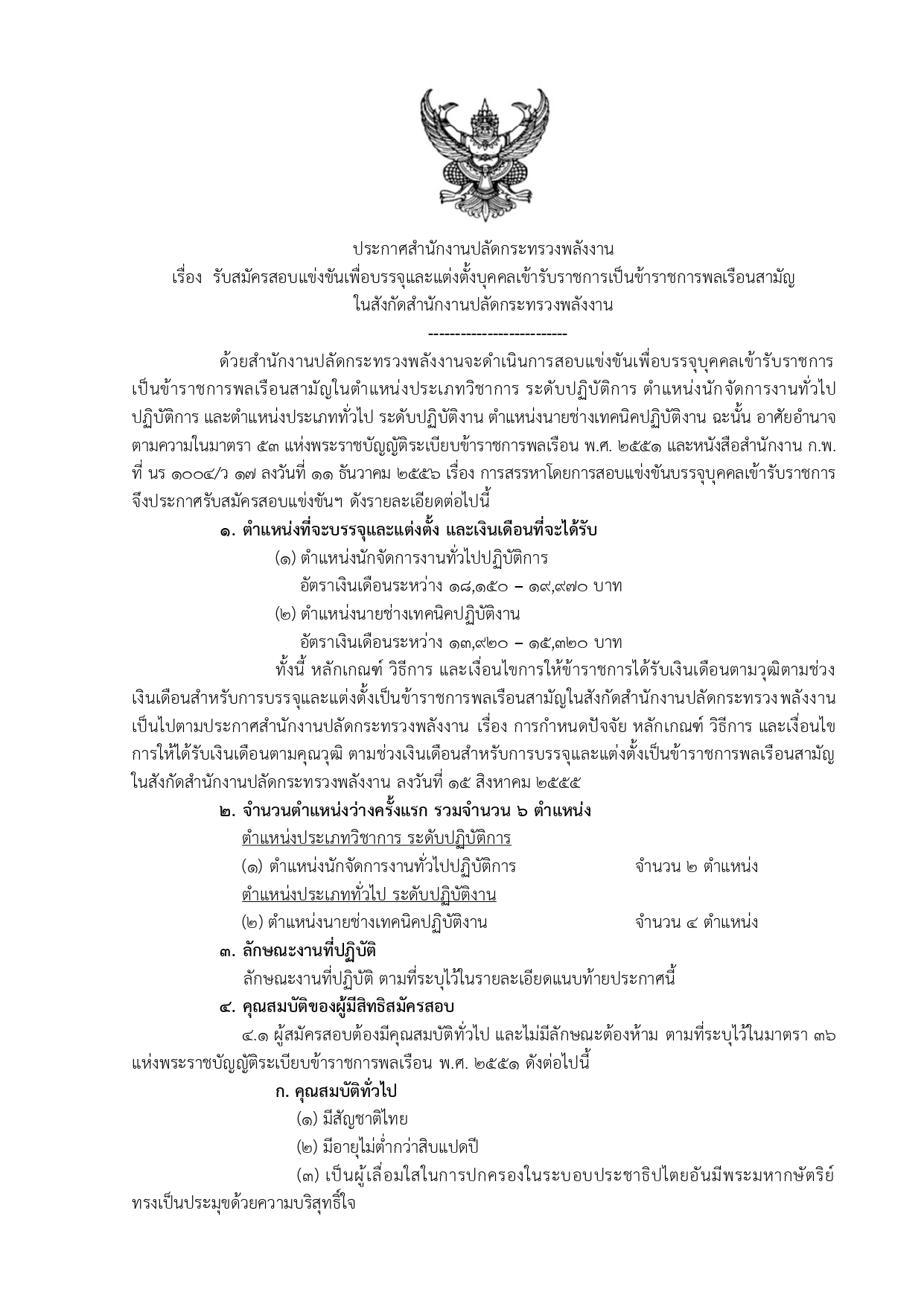 หัวข้อ: “รับสมัครสอบแข่งขันเพื่อบรรจุและแต่งตั้งบุคคลเข้ารับราชการ สังกัดสำนักงานปลัดกระทรวงพลังงาน”
