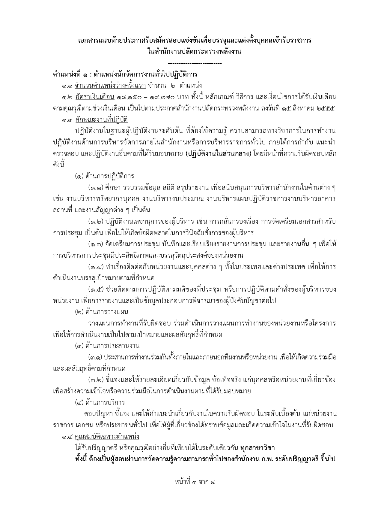 1. ตำแหน่งนักจัดการงานทั่วไปปฏิบัติการ (ประเภทวิชาการ)