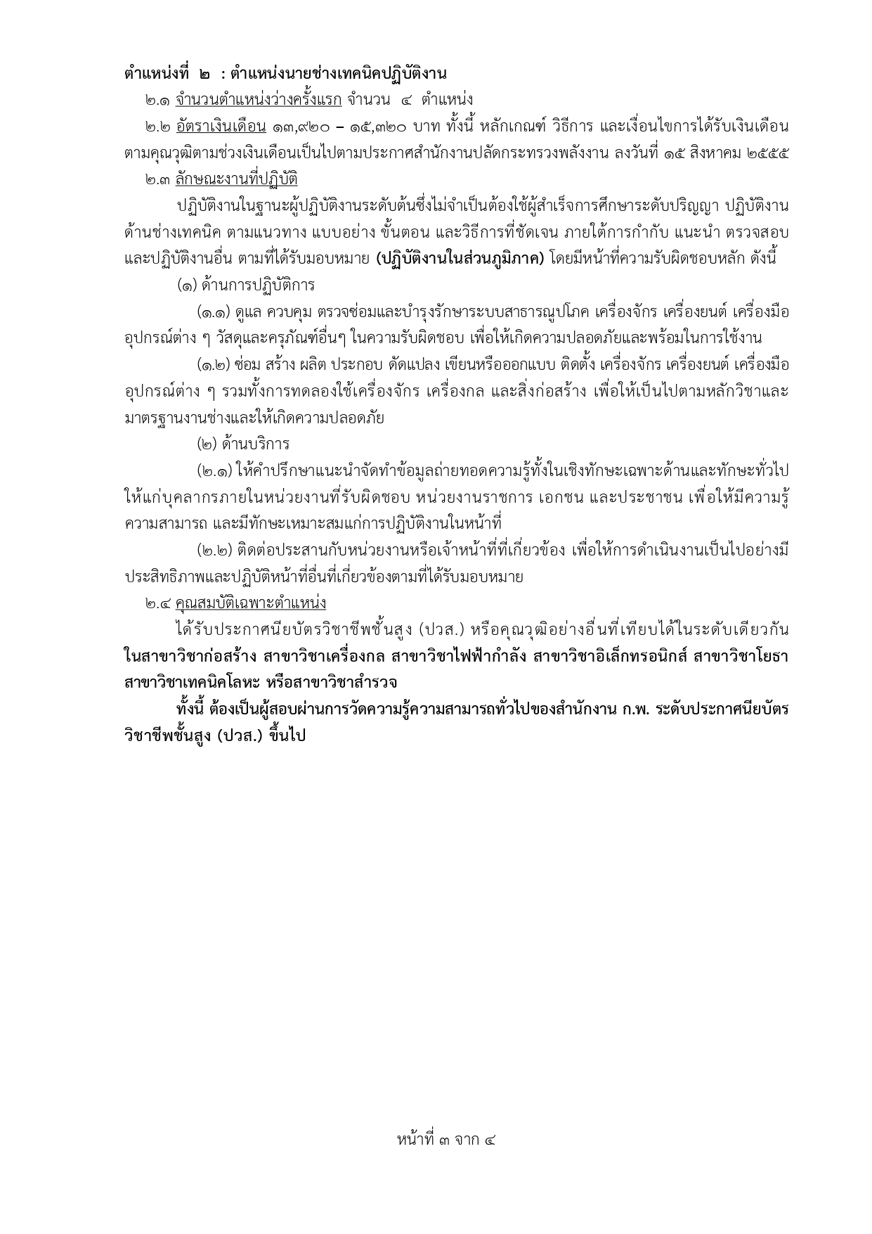 2. ตำแหน่งนายช่างเทคนิคปฏิบัติงาน (ประเภททั่วไป)