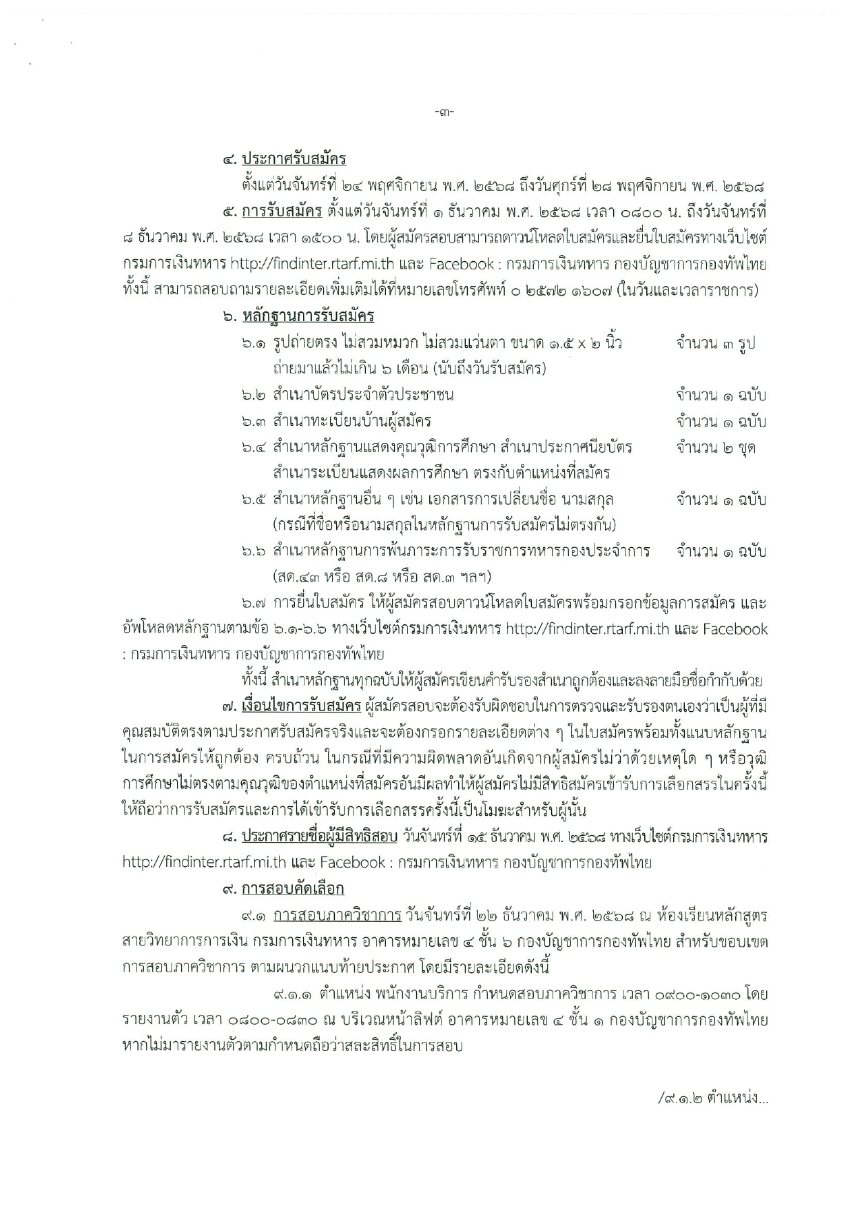หรือ Facebook: กรมการเงินทหาร กองบัญชาการกองทัพไทย