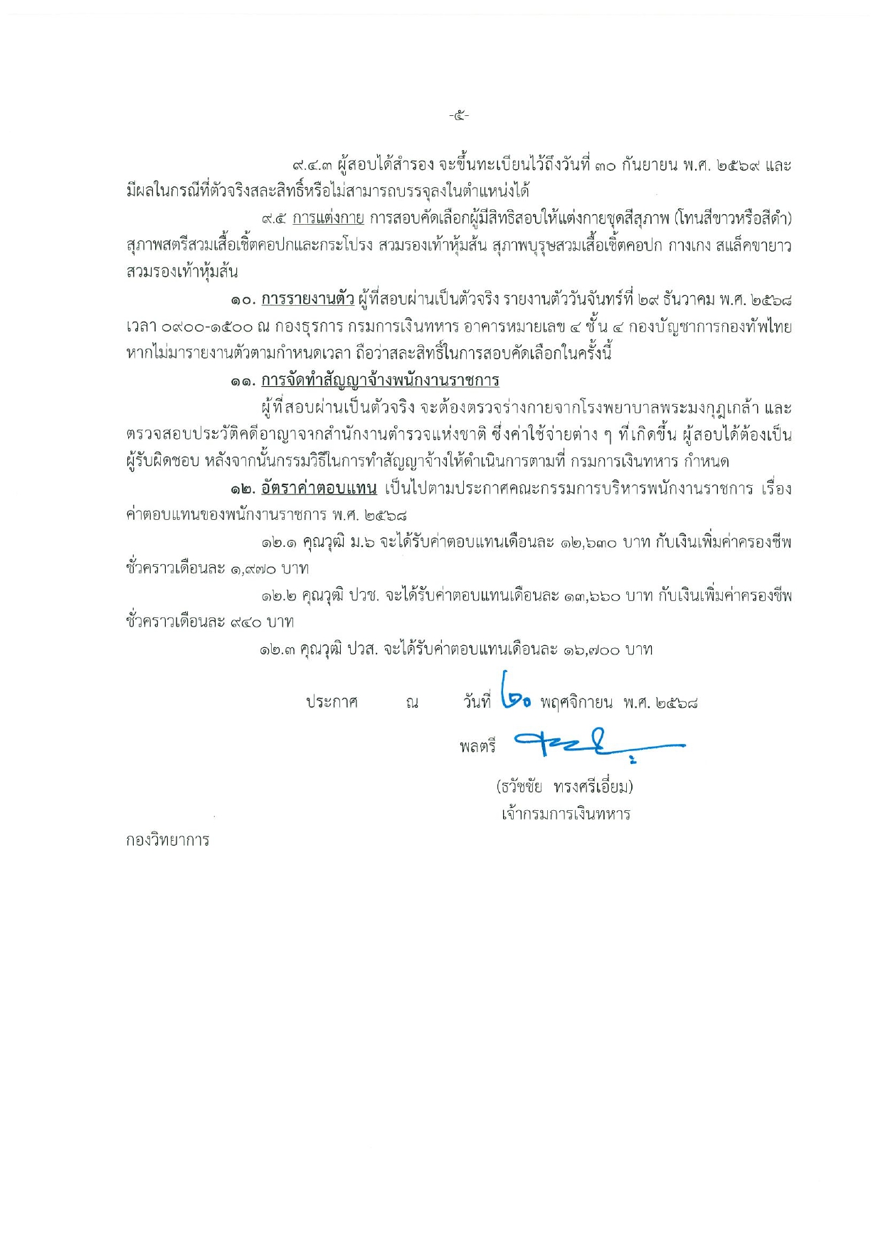 สอบภาควิชาการ: วันจันทร์ที่ 22 ธันวาคม พ.ศ. 2568 (ณ กองบัญชาการกองทัพไทย)