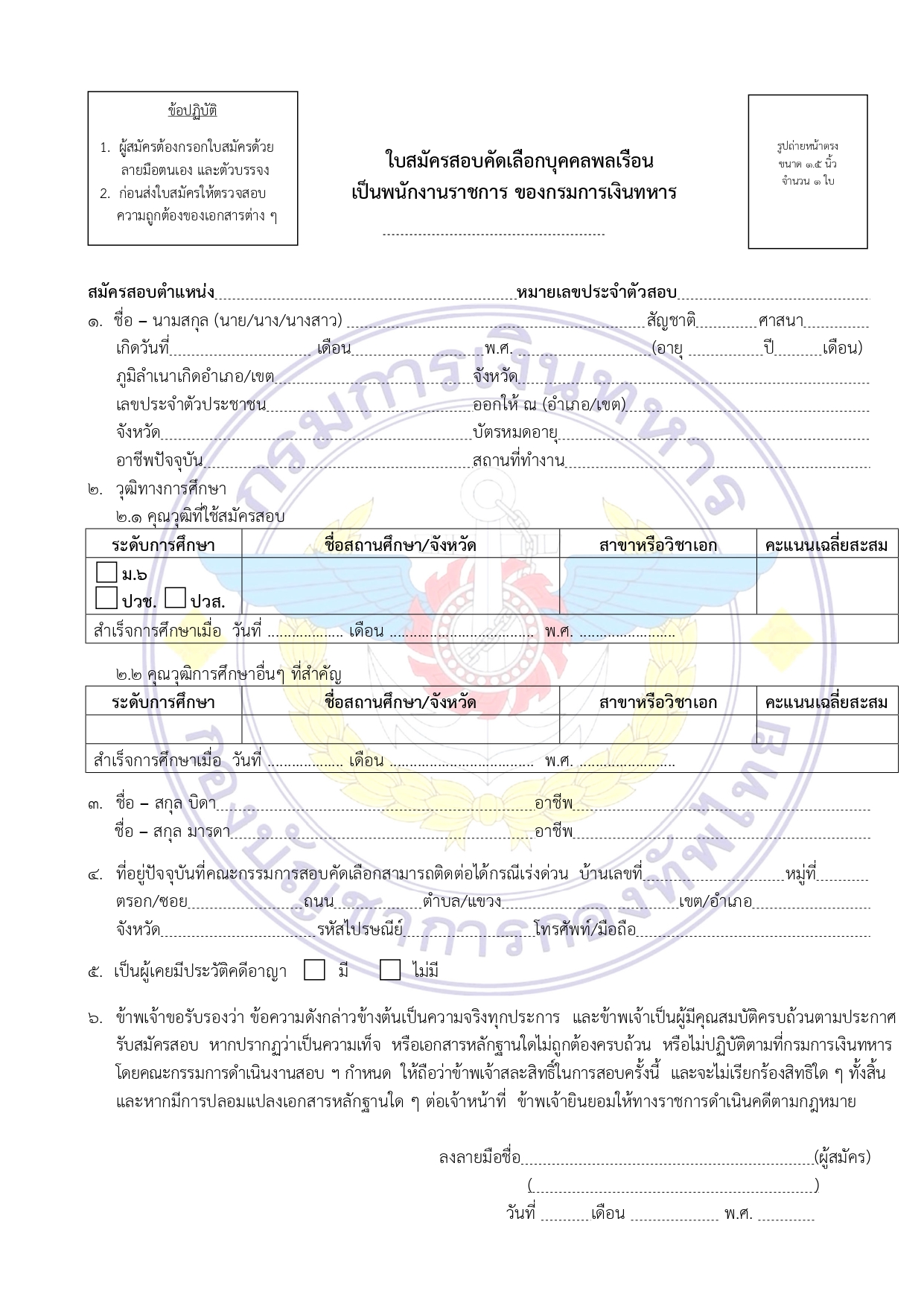 สมัครทางอินเทอร์เน็ต โดยดาวน์โหลดใบสมัครและยื่นเอกสารผ่านทางเว็บไซต์กรมการเงินทหาร (http://findinter.rtarf.mi.th)