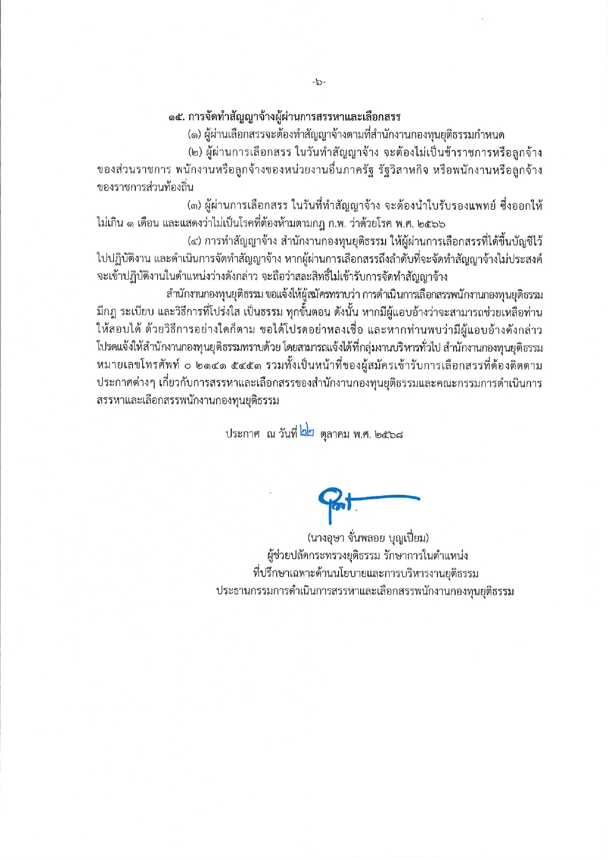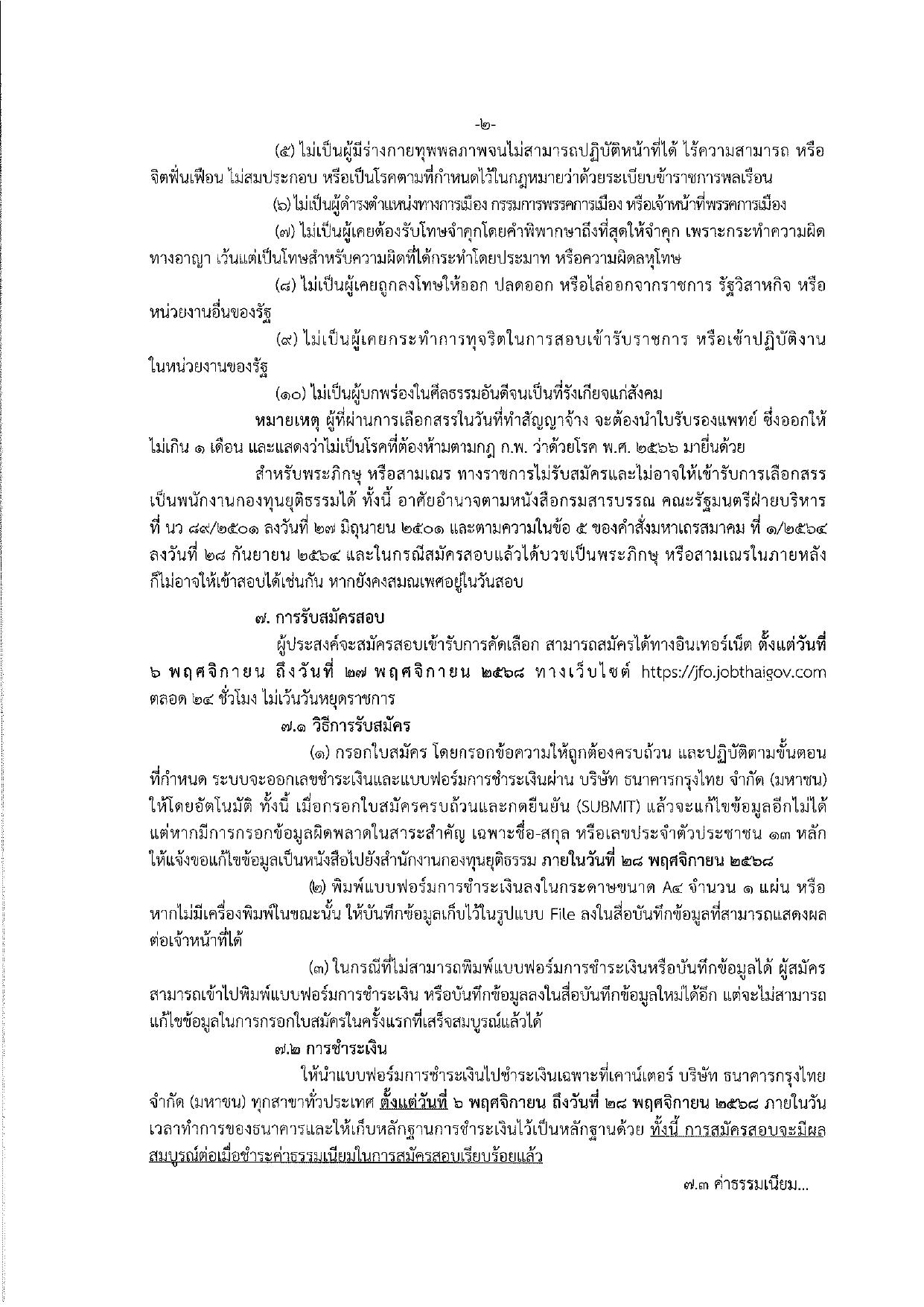 - เรื่อง รับสมัครบุคคลเพื่อเลือกสรรเป็นพนักงานกองทุนยุติธรรม(เปิดรับสมัคร ตั้งแต่วันที่ 6 พฤศจิกายน – 27 พฤศจิกายน 2568)