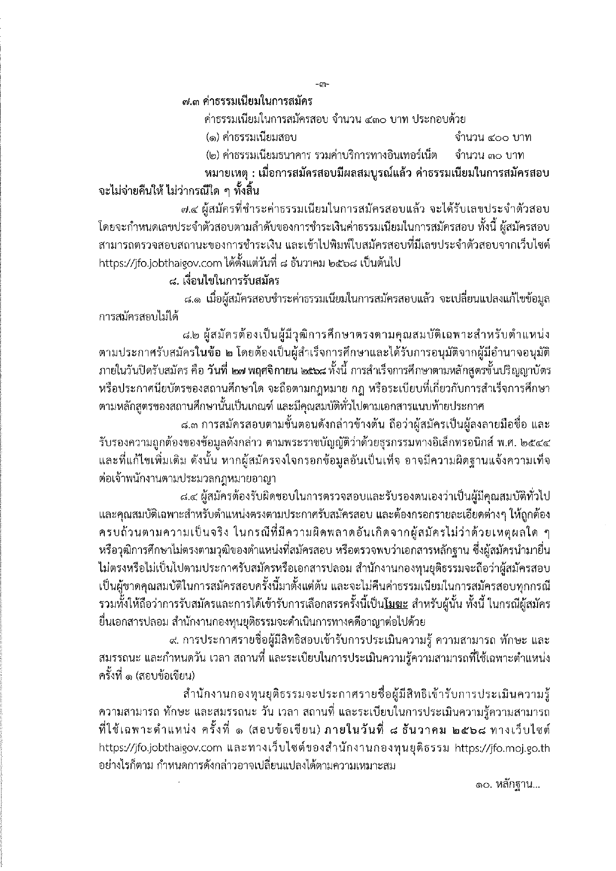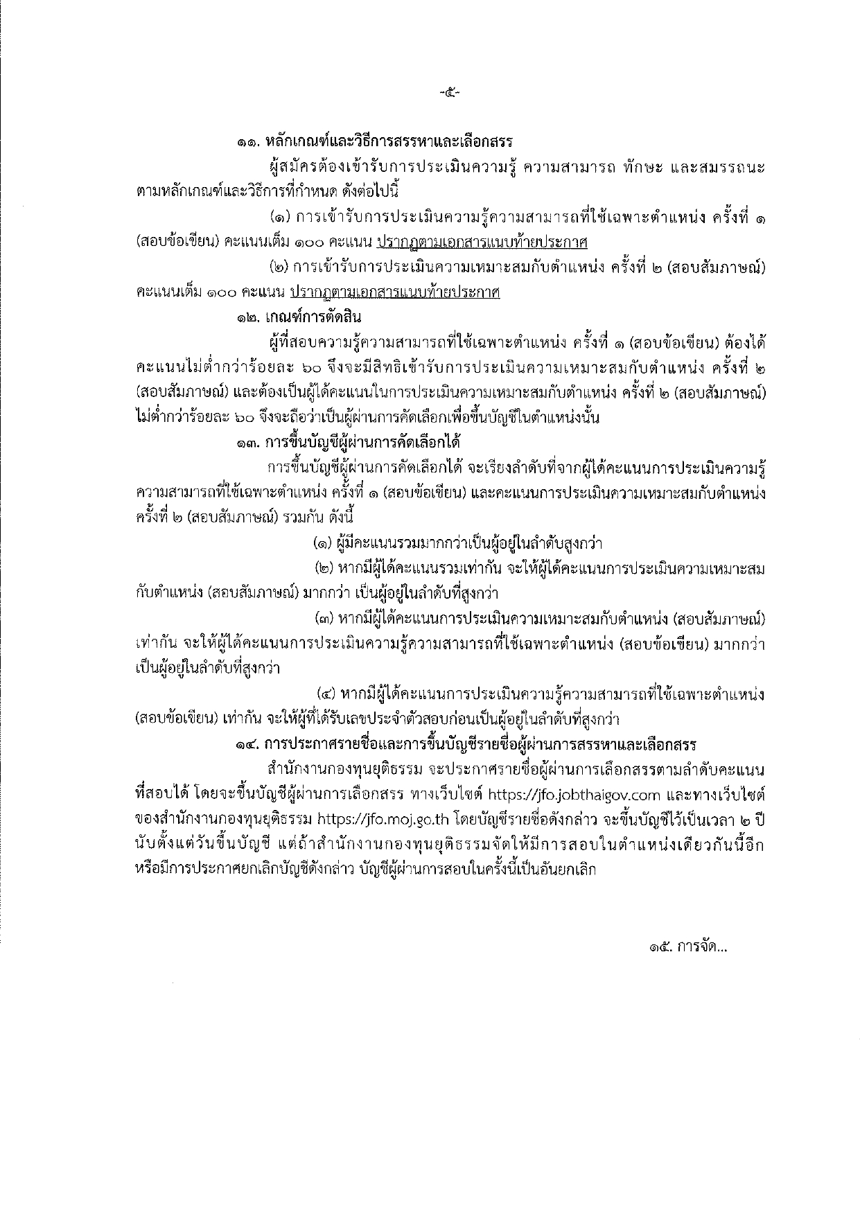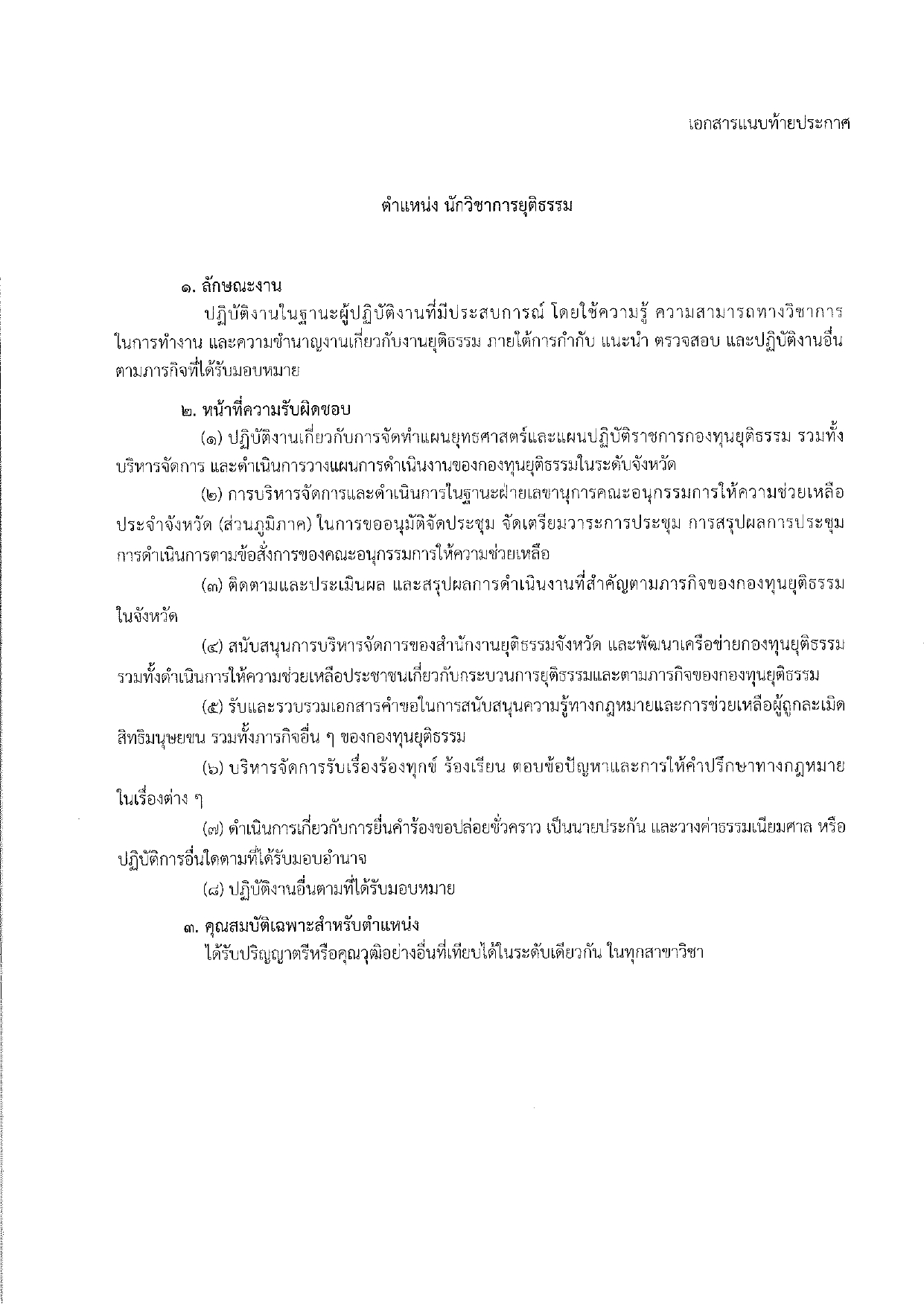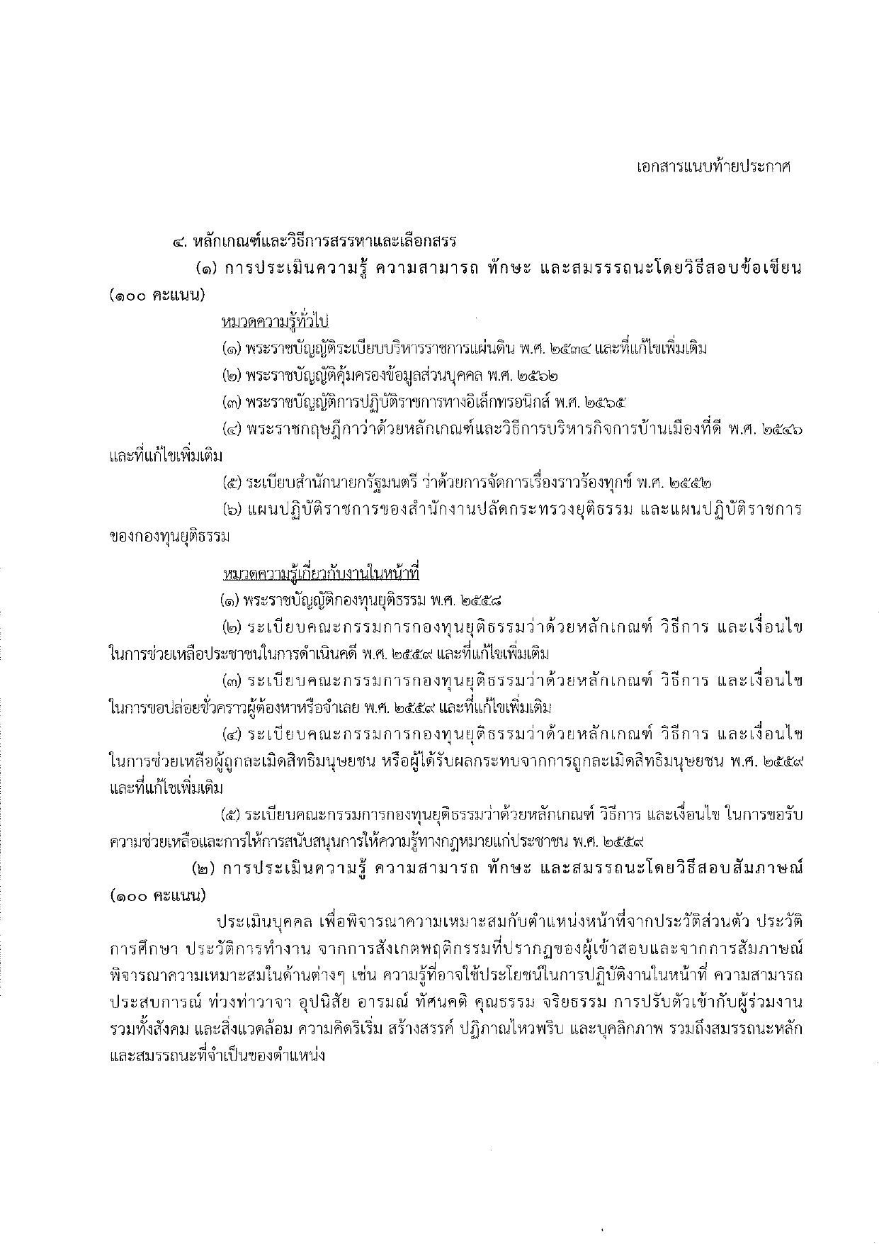 - ประกาศคณะกรรมการดำเนินการสรรหาและเลือกสรรพนักงานกองทุนยุติธรรม