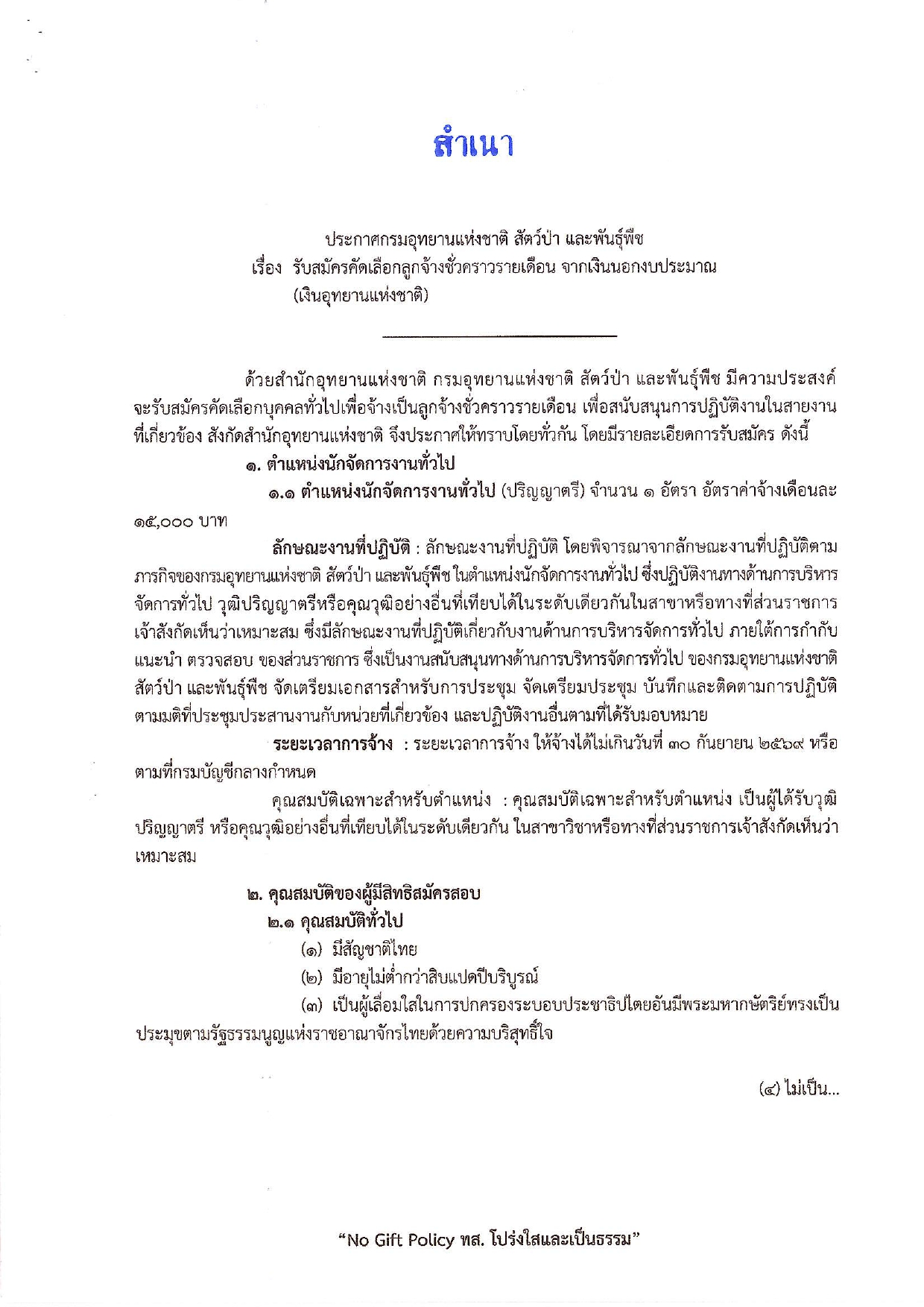 ประกาศรับสมัคร “ลูกจ้างชั่วคราวรายเดือน (เงินอุทยานแห่งชาติ)”
