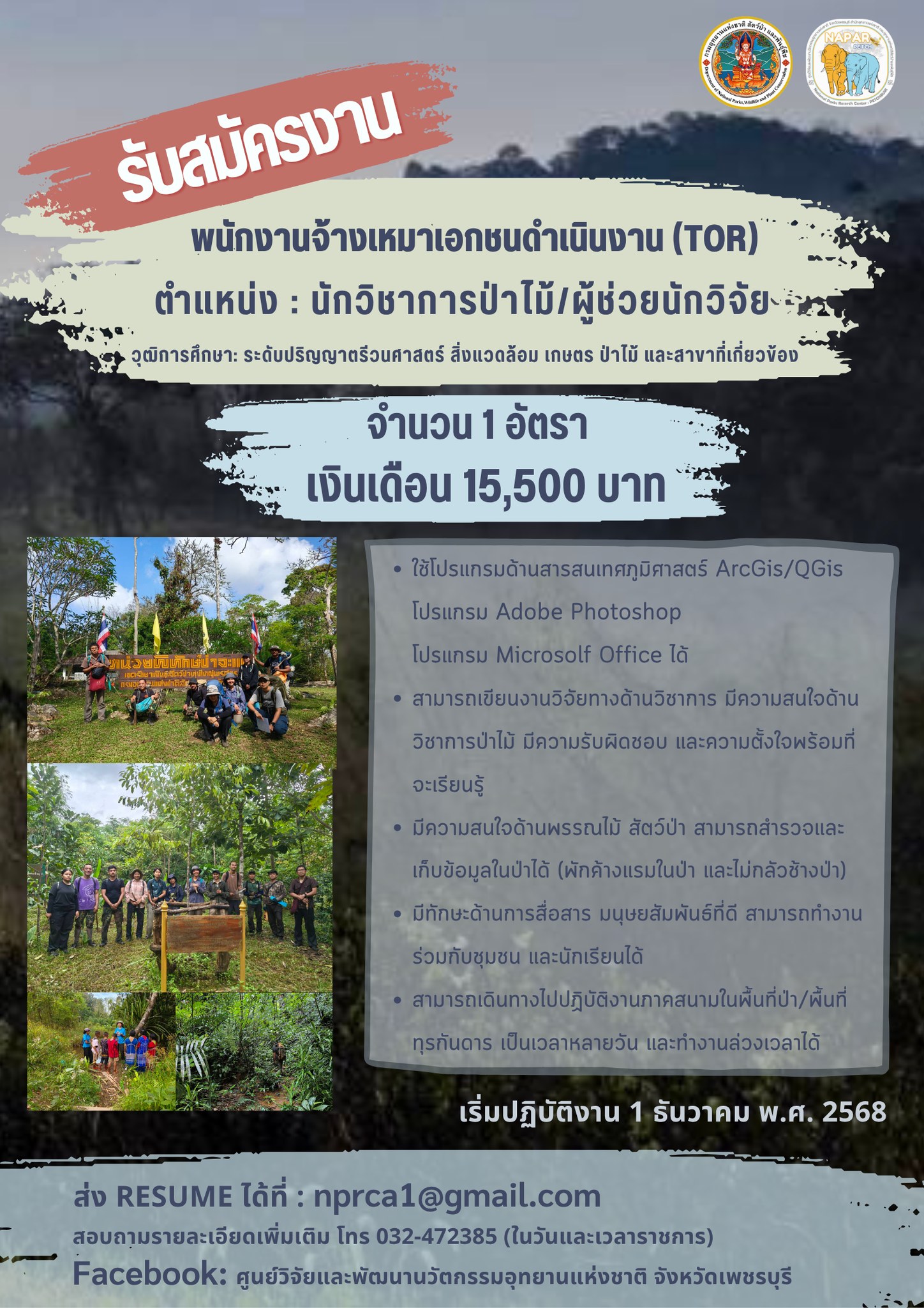 ตำแหน่ง: พนักงานจ้างเหมาฯ (TOR) ตำแหน่งนักวิชาการป่าไม้/ผู้ช่วยนักวิจัย
