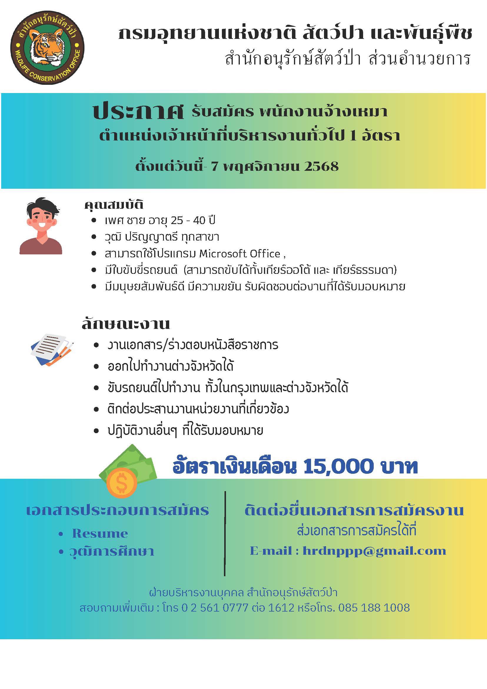 ประกาศรับสมัครงานด่วน! ⭐️ กองคุ้มครองพันธุ์สัตว์ป่าและพืชป่าตามอนุสัญญา (กคส.)