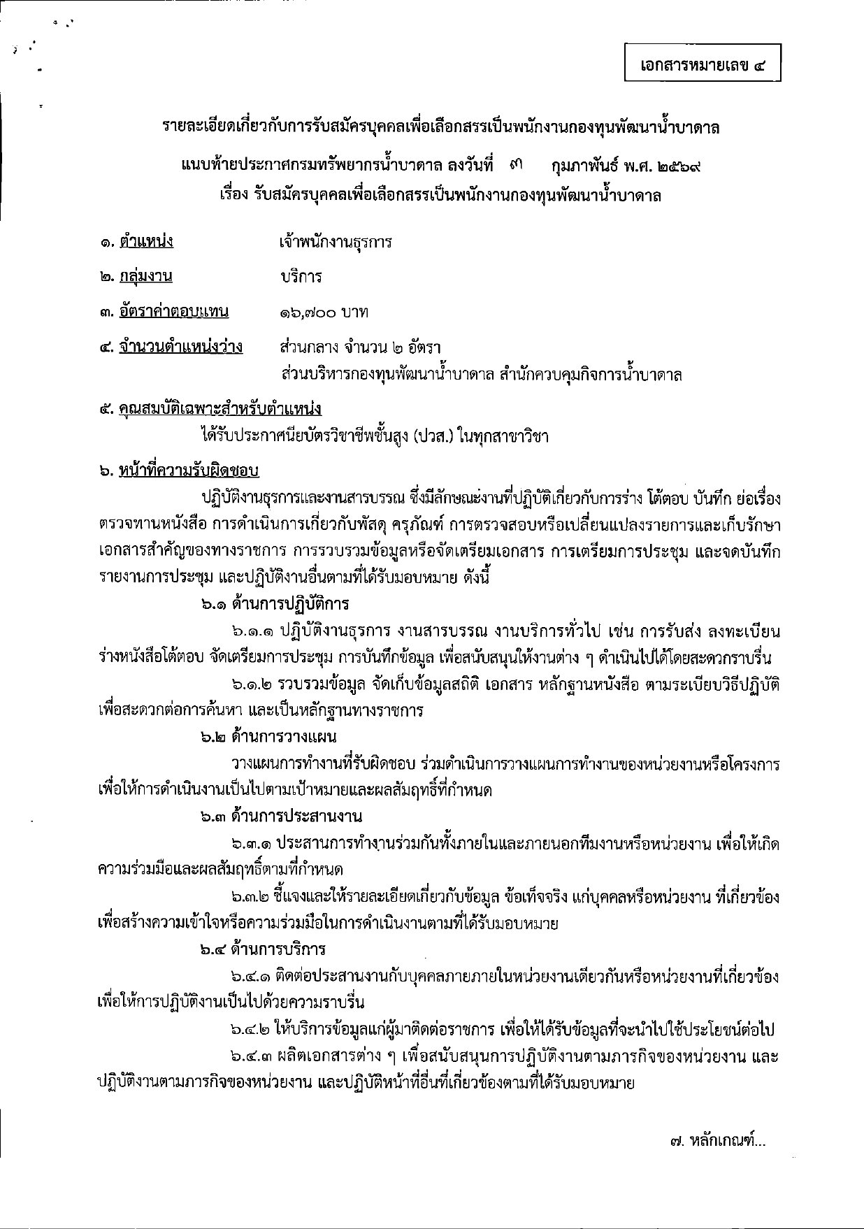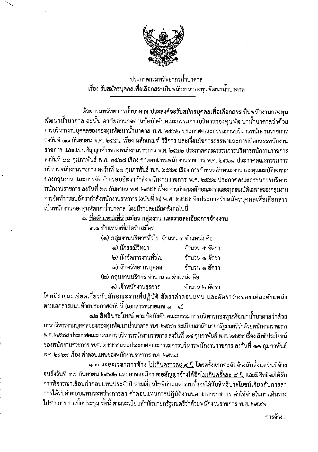 เรื่อง รับสมัครบุคคลเพื่อเลือกสรรเป็นพนักงานกองทุนพัฒนาน้ำบาดาล