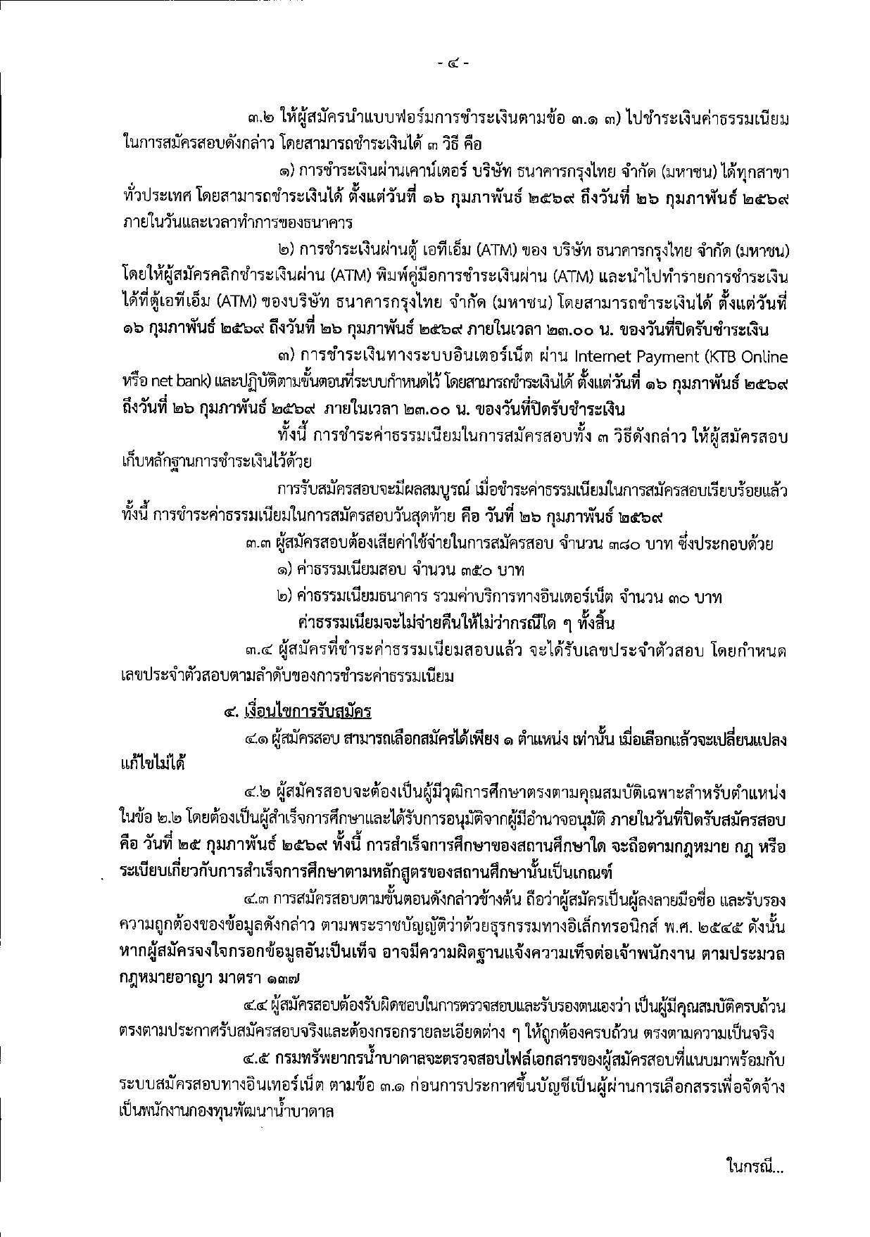 การชำระเงินค่าธรรมเนียม: ชำระเงินจำนวน 380 บาท (รวมค่าบริการธนาคารแล้ว) ผ่านเคาน์เตอร์ธนาคารกรุงไทย, ตู้ ATM หรือแอปพลิเคชัน Krungthai NEXT ได้จนถึงวันที่ 26 กุมภาพันธ์ 2569