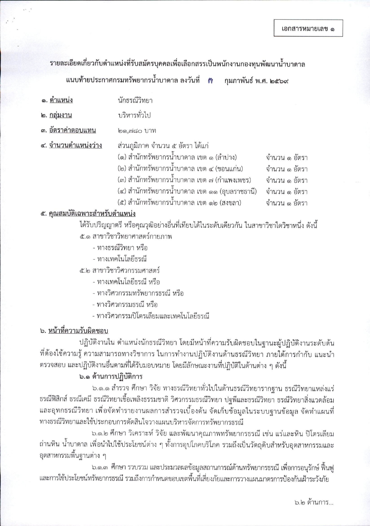 ตำแหน่งนักธรณีวิทยา (จำนวน 5 อัตรา)