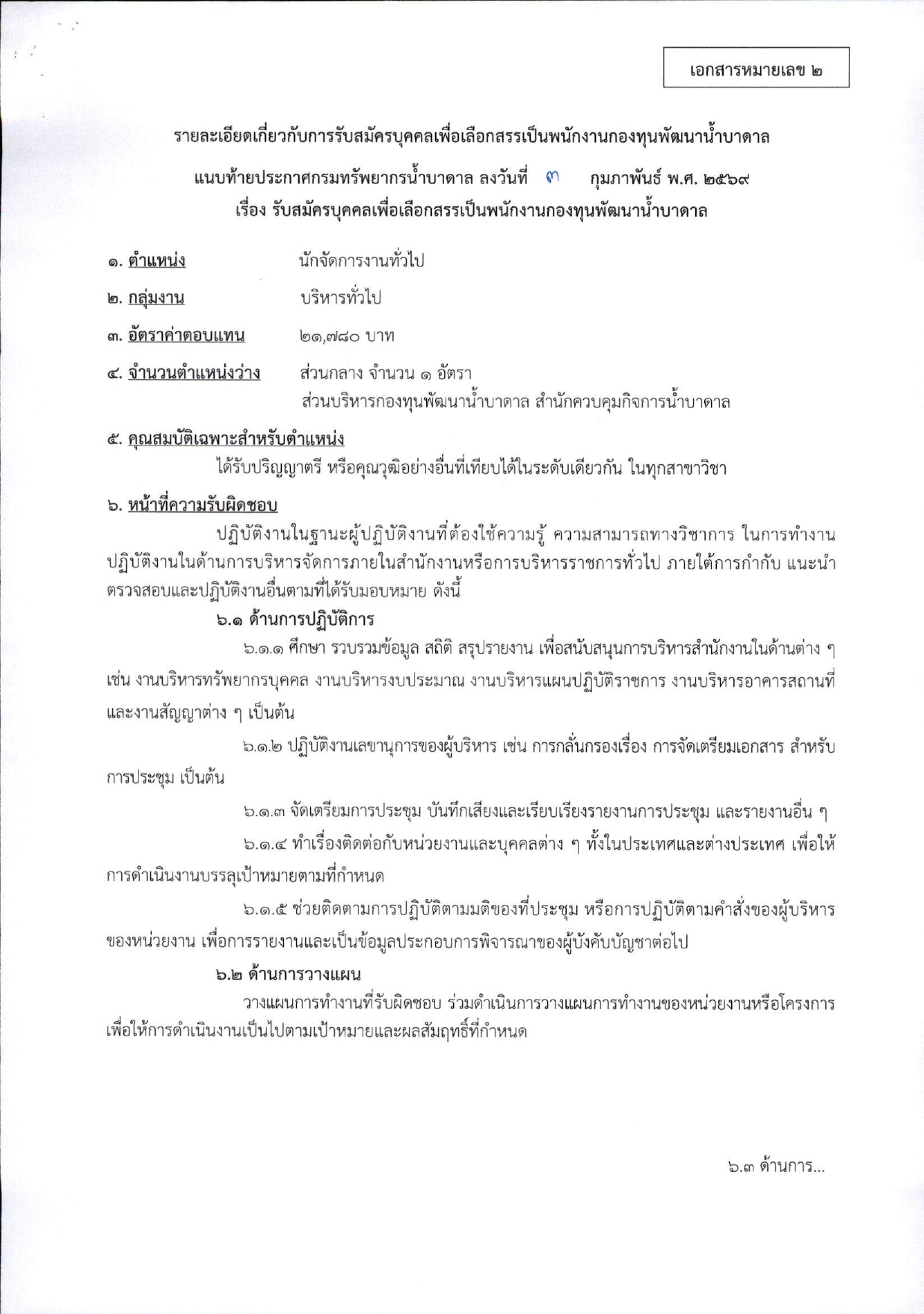 เลือกหัวข้อการสมัครพนักงานกองทุนพัฒนาน้ำบาดาล ระหว่างวันที่ 16 – 25 กุมภาพันธ์ 2569