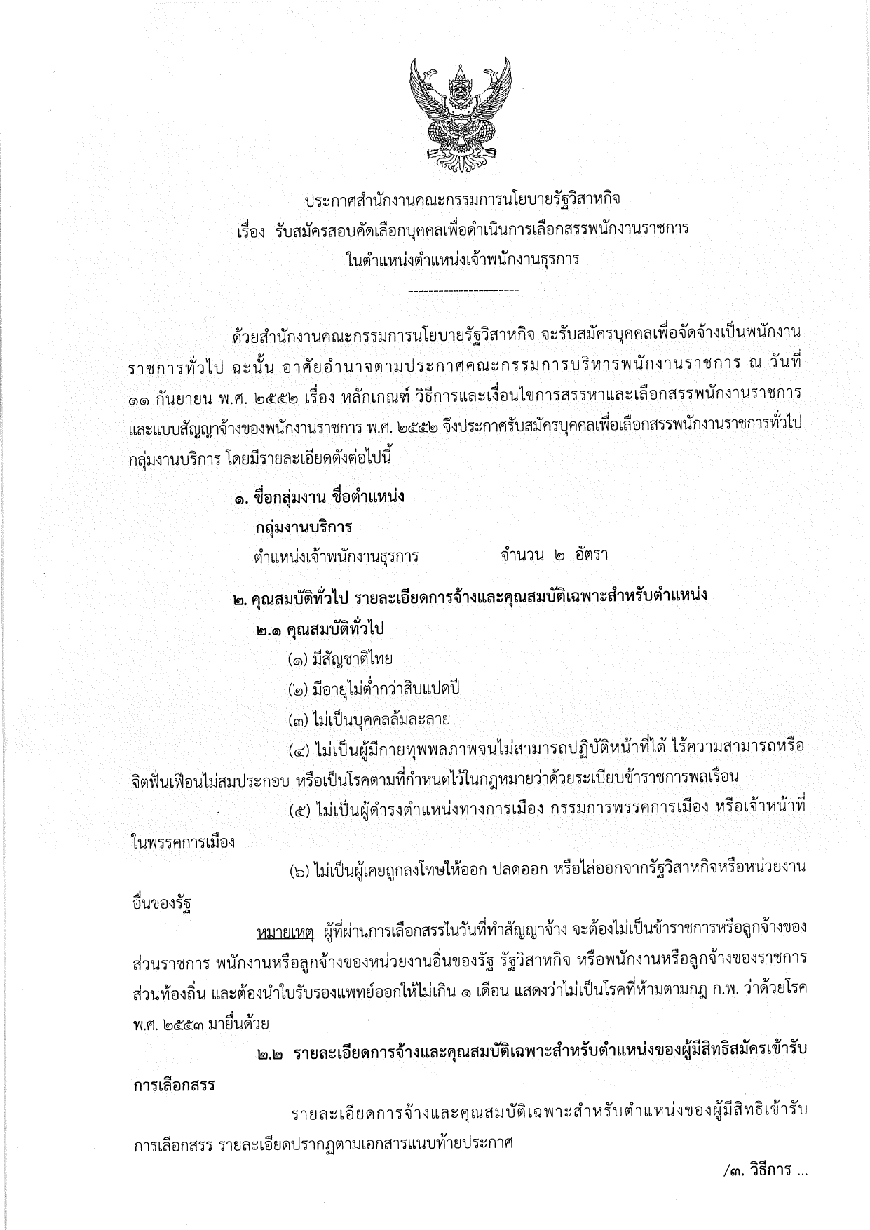 คลิกที่นี่เพื่ออ่าน ประกาศสำนักงานคณะกรรมการนโยบายรัฐวิสาหกิจ เรื่อง รับสมัครสอบคัดเลือกบุคคลเพื่อดำเนินการเลือกสรรพนักงานราชการในตำแหน่งตำแหน่งเจ้าพนักงานธุรการ
