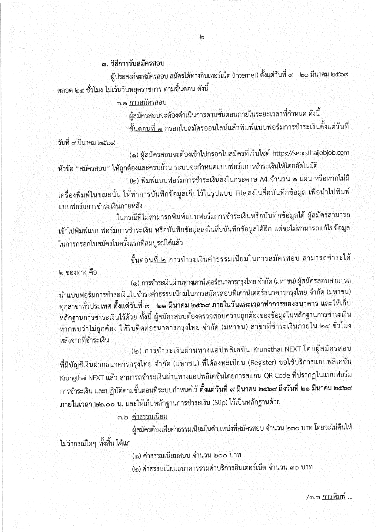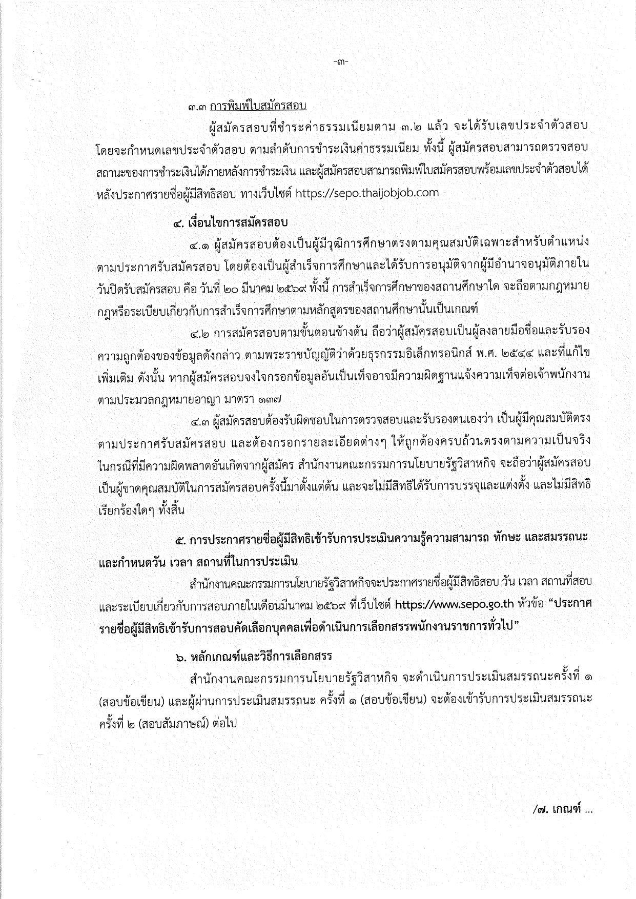 สมัครผ่านทางอินเทอร์เน็ตที่เว็บไซต์ https://sepo.thaijobjob.com