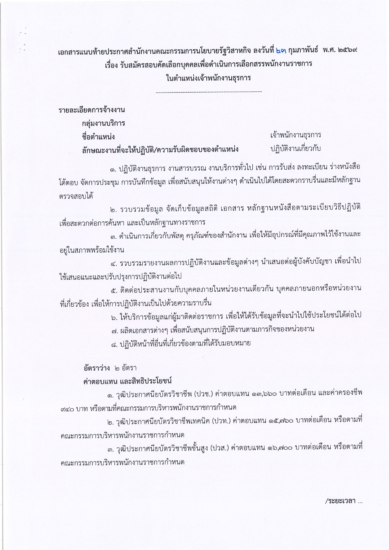 ชื่อตำแหน่ง: เจ้าพนักงานธุรการ