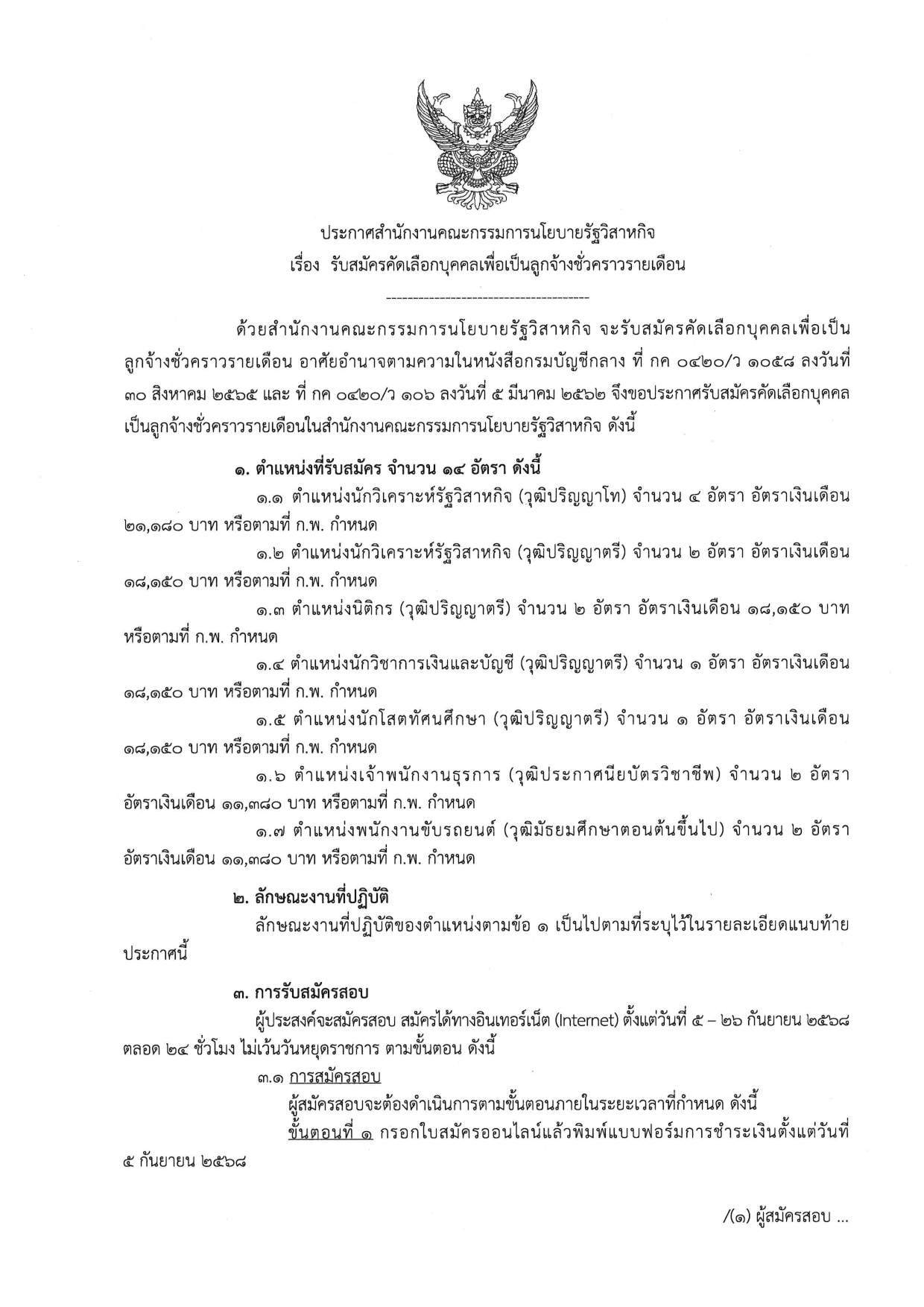 - คลิกที่นี่เพื่ออ่าน ประกาศสำนักงานคณะกรรมการนโยบายรัฐวิสาหกิจ เรื่อง รับสมัครคัดเลือกบุคคลเพื่อเป็นลูกจ้างชั่วคราวรายเดือน