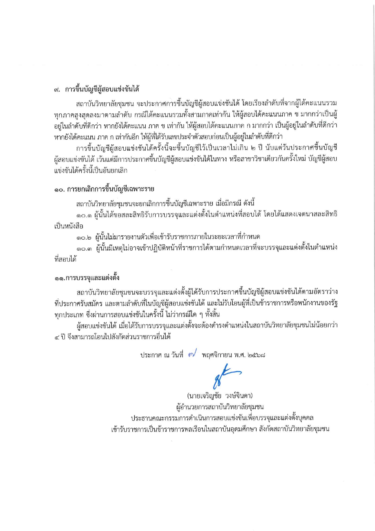 สังกัดสถาบันวิทยาลัยชุมชน ในตำแหน่งประเภทวิชาชีพเฉพาะหรือเชี่ยวชาญเฉพาะ ระดับปฏิบัติการ