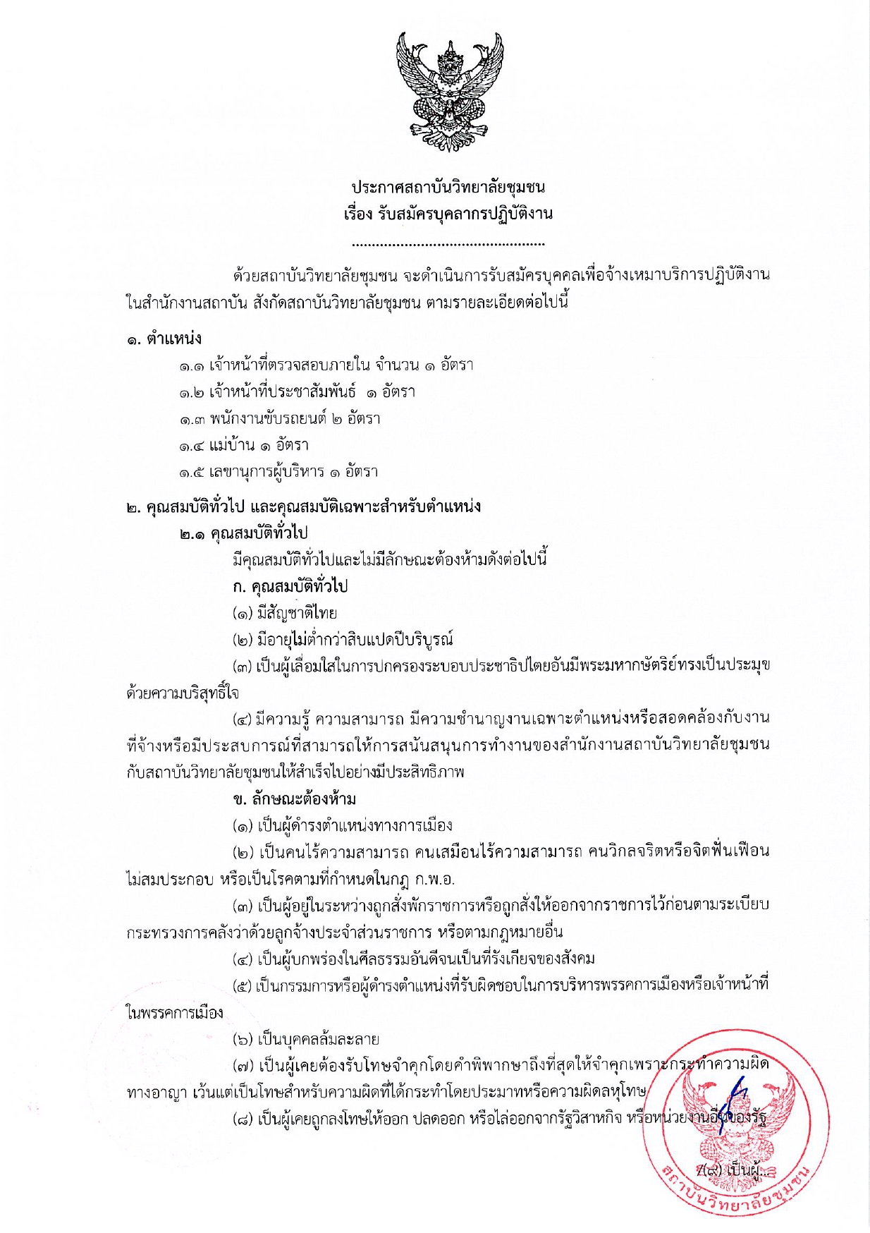สถาบันวิทยาลัยชุมชน รับสมัครงานเพื่อปฏิบัติงาน หลายอัตรา / ป.ตรี หลายสาขา และ อื่นๆ / ไม่ต้องผ่าน ภาค ก ของ กพ. / เงินเดือน 20000 / สมัคร online 26 มกราคม – 13 กุมภาพันธ์ 2569