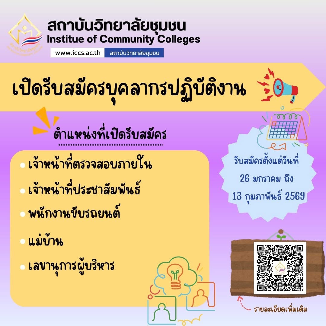 ประกาศรับสมัครบุคลากร สถาบันวิทยาลัยชุมชน ประจำปี 2569 (5 ตำแหน่ง รวม 6 อัตรา)