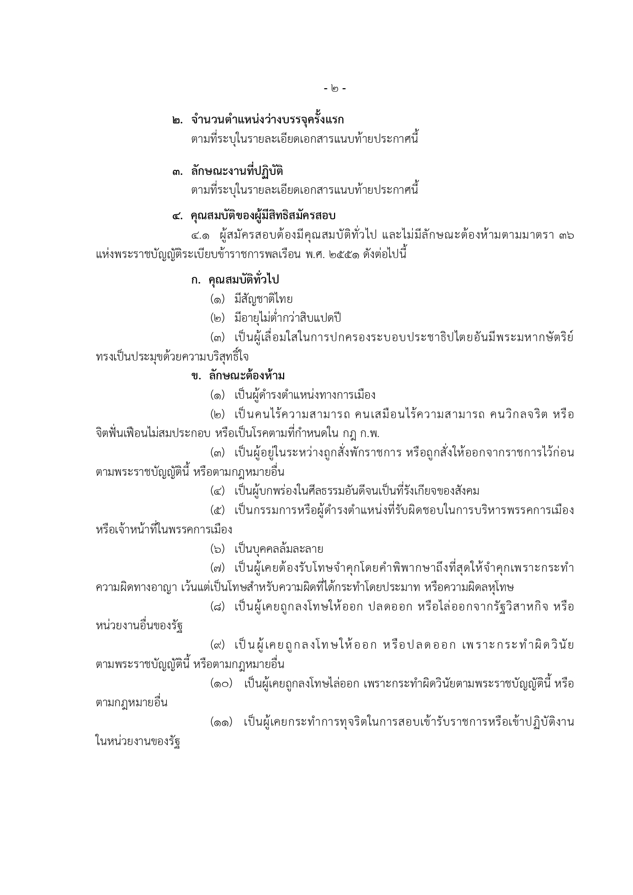 เงื่อนไขสำคัญ: ผู้สมัครทุกตำแหน่งต้องเป็นผู้สอบผ่านการวัดความรู้ความสามารถทั่วไป (ภาค ก.) ของสำนักงาน ก.พ. ในระดับเดียวกับที่สมัคร หรือสูงกว่า