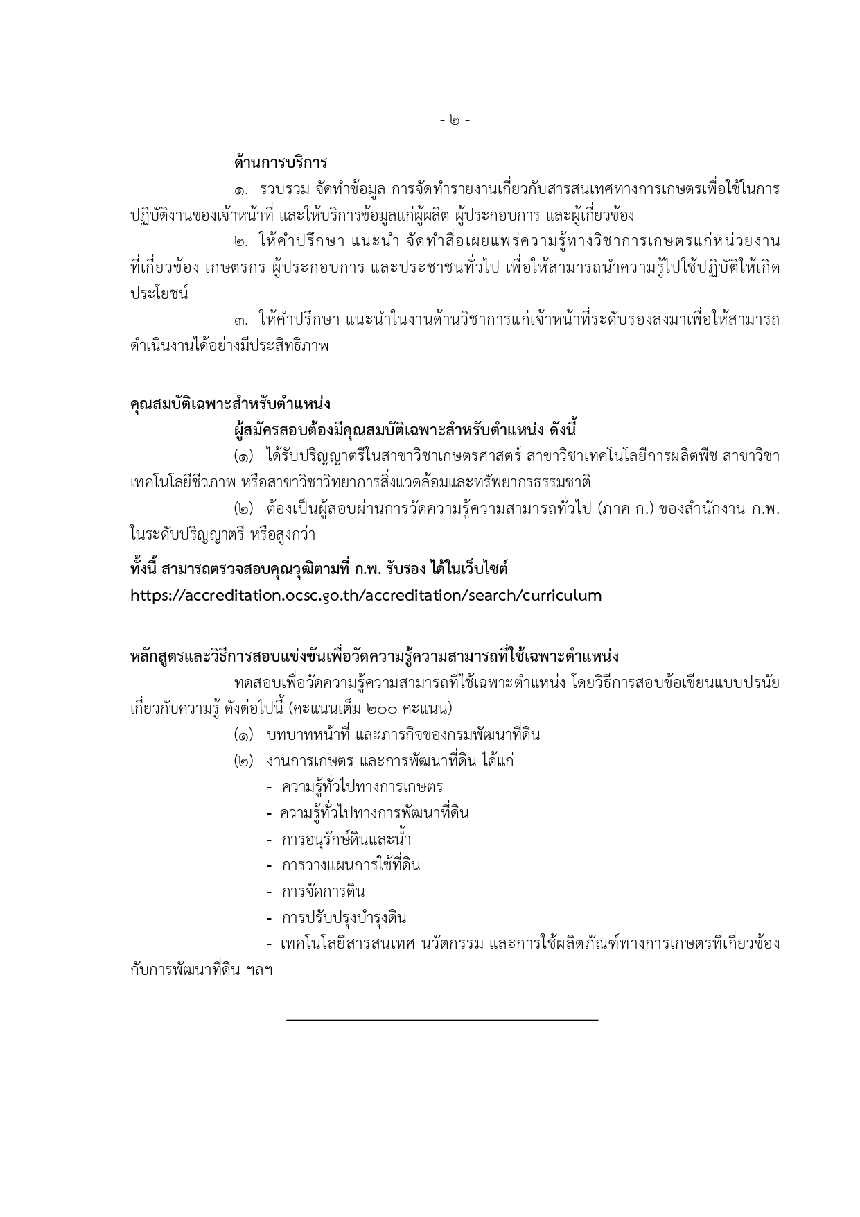 เจ้าพนักงานการเกษตร: ได้รับประกาศนียบัตรวิชาชีพชั้นสูง (ปวส.) หรืออนุปริญญา 3 ปี ในสาขาวิชาเกษตรศาสตร์, ธุรกิจเกษตร, พืชศาสตร์ หรือช่างกลเกษตร