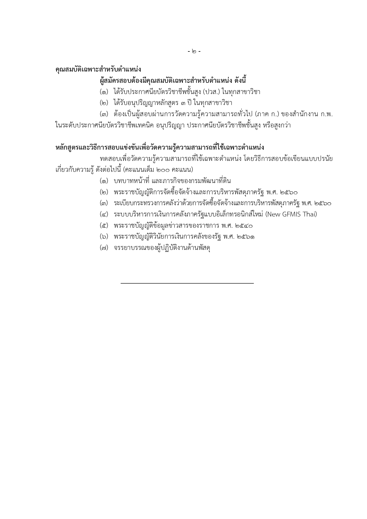 เจ้าพนักงานพัสดุ: ได้รับประกาศนียบัตรวิชาชีพชั้นสูง (ปวส.) หรืออนุปริญญา 3 ปี ในทุกสาขาวิชา