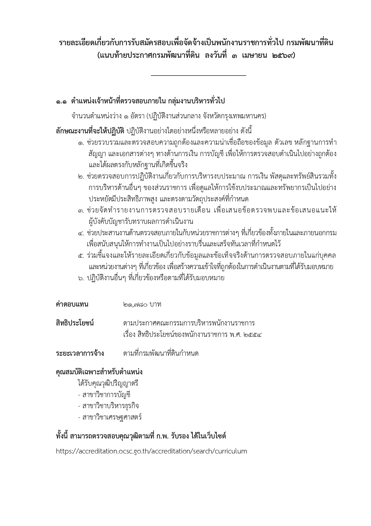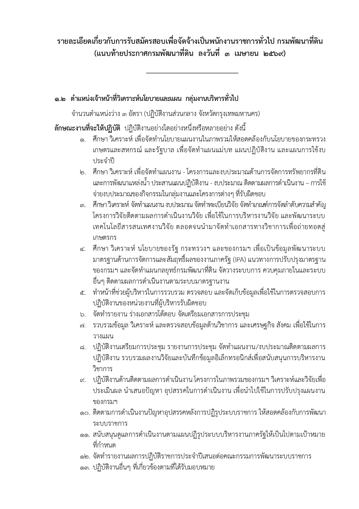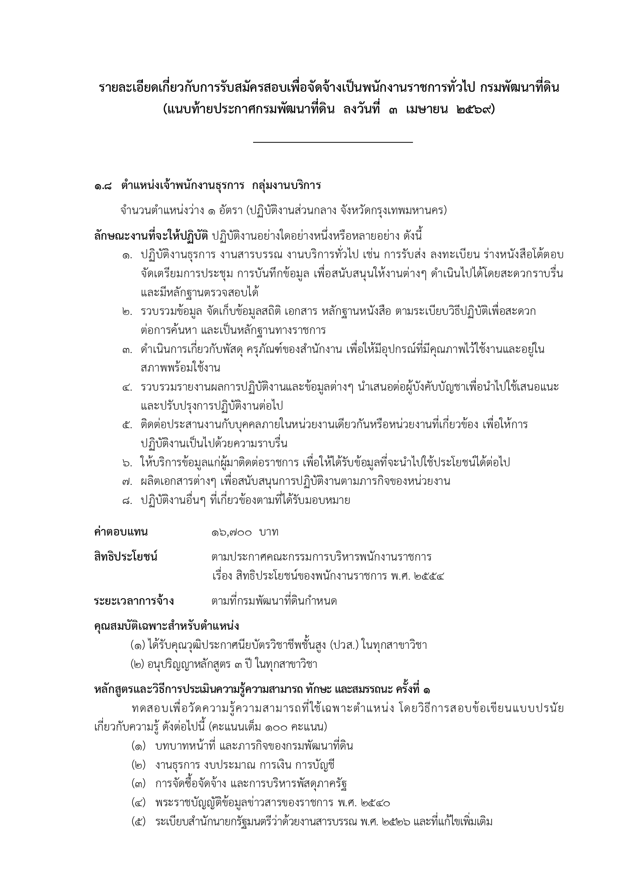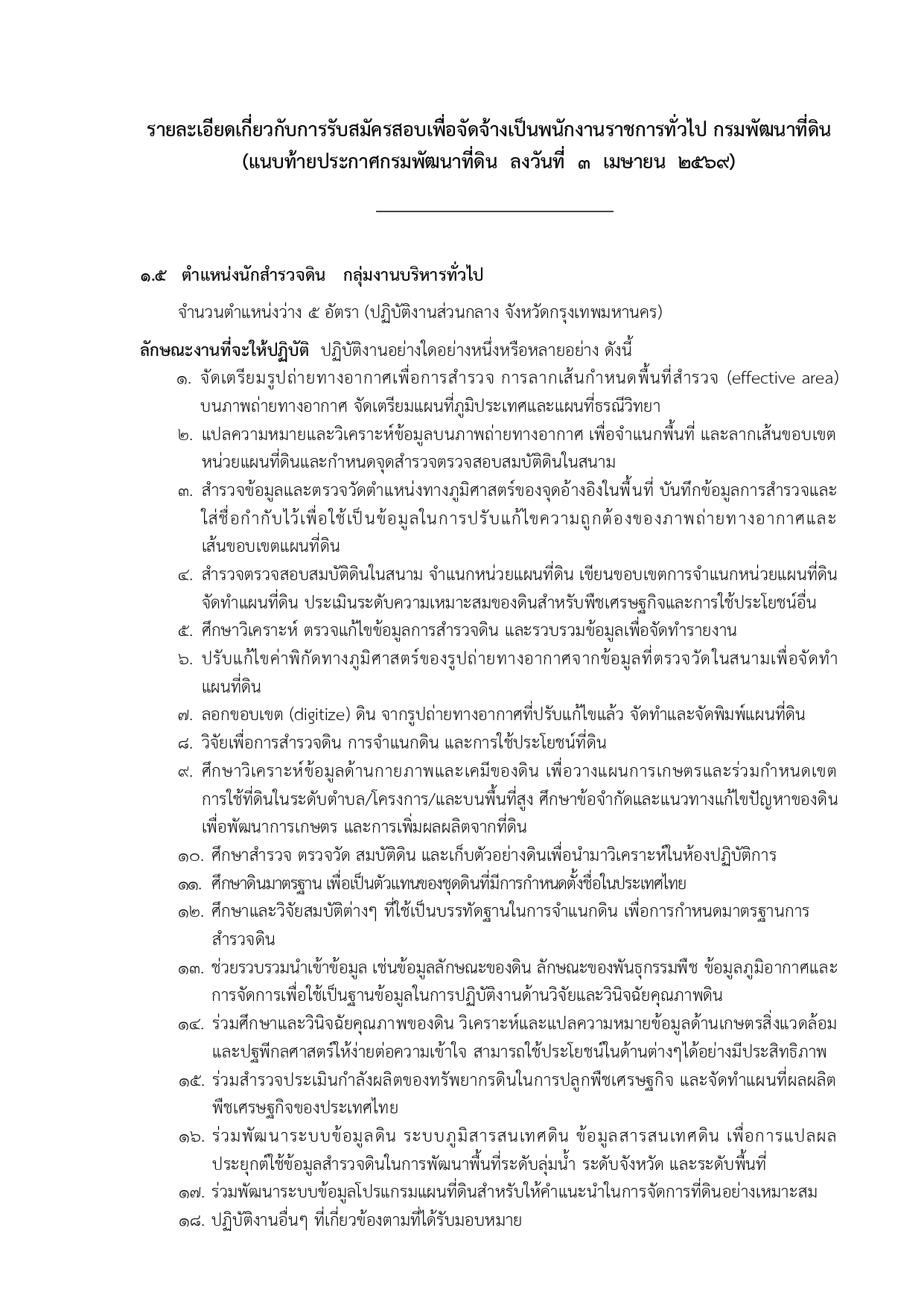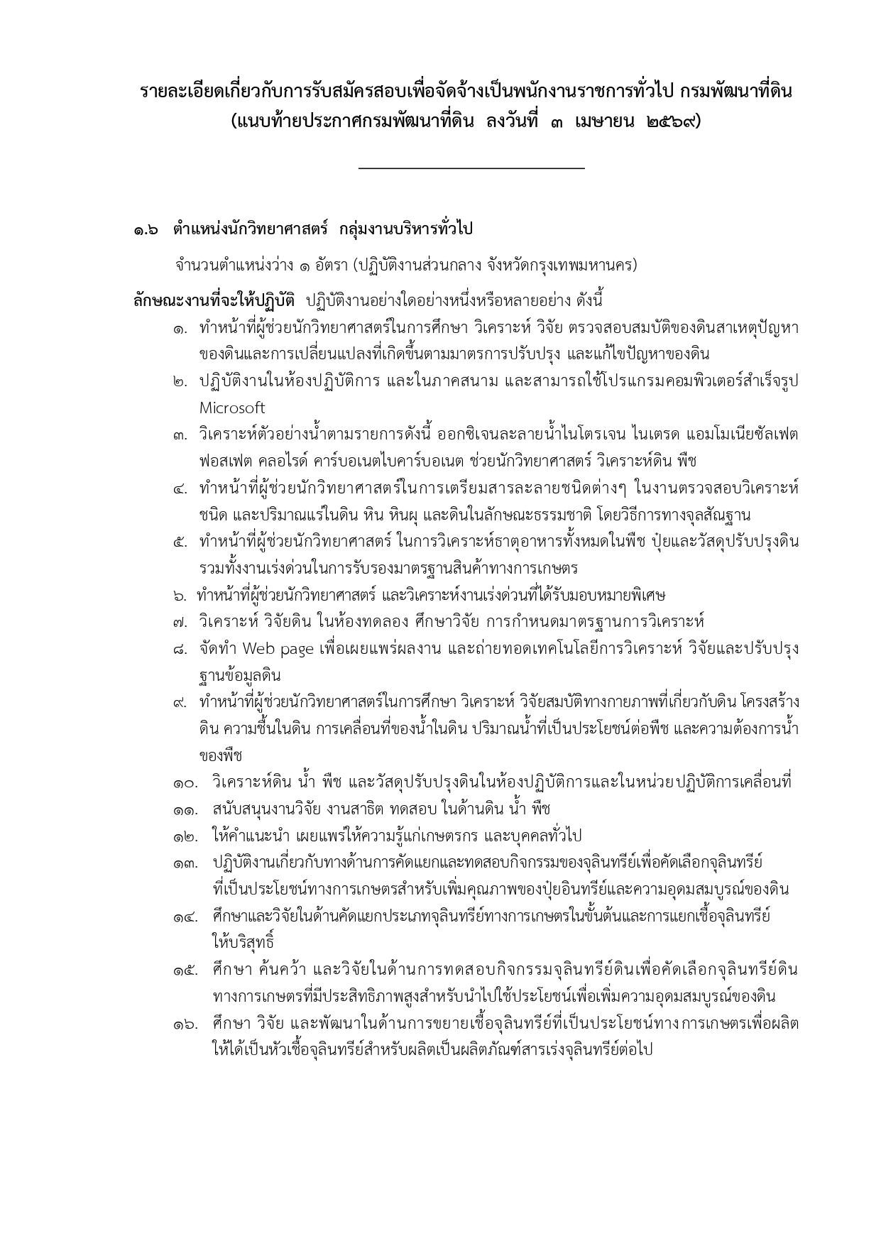 - คลิกที่นี่เพื่ออ่าน ประกาศกรมพัฒนาที่ดิน เรื่อง รับสมัครบุคคลเพื่อเลือกสรรเป็นพนักงานราชการทั่วไป