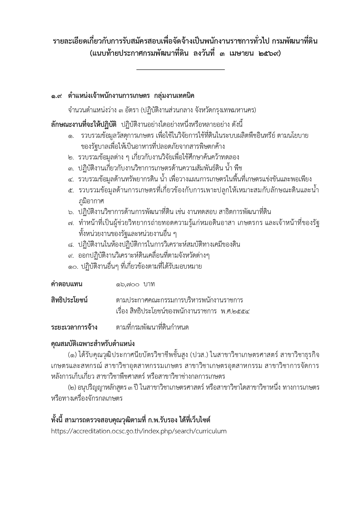 กรมพัฒนาที่ดิน เปิดรับสมัครบุคคลเพื่อเลือกสรรเป็นพนักงานราชการ 21 อัตรา / ปวส. และ ป.ตรี หลายสาขา / ไม่ต้องผ่าน ภาค ก. / เงินเดือน 21780 / สมัคร online 20 – 24 เมษายน 2569
