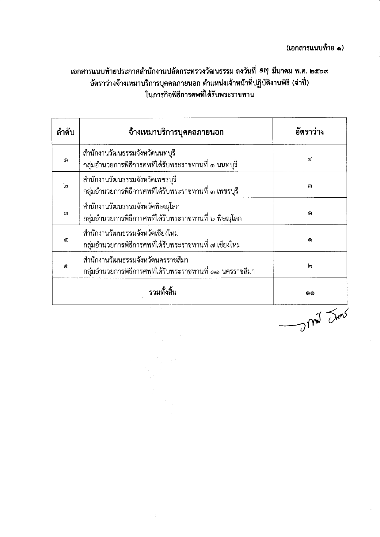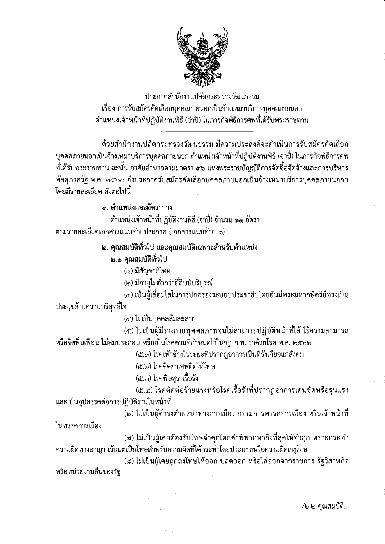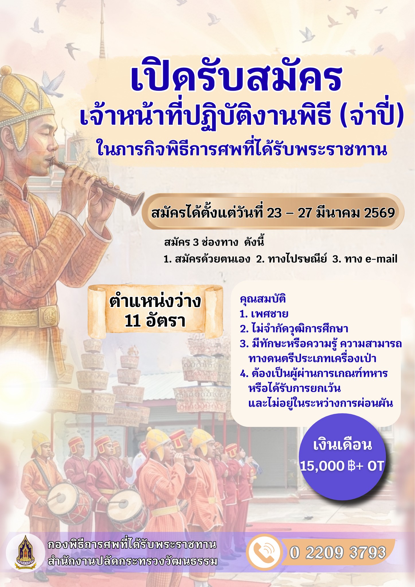 กระทรวงวัฒนธรรม รับสมัครงาน 11 อัตรา / ไม่จำกัดวุฒิ / ส่วนภูมิภาค ทั่วประเทศ / ไม่ต้องผ่าน ภาค ก ของ กพ. / เงินเดือน 15000 + โอที / สมัคร email 23 – 27 มีนาคม 2569