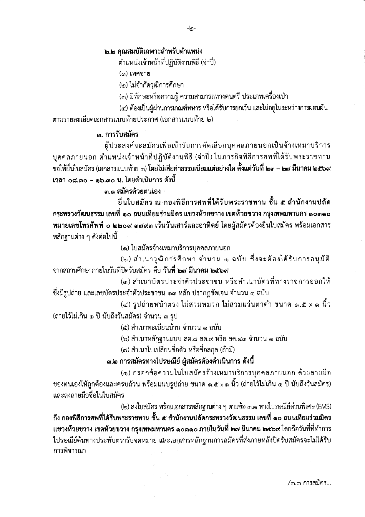เปิดรับสมัครบุคคลภายนอกเพื่อคัดเลือกเป็นพนักงานจ้างเหมาบริการ ตำแหน่ง เจ้าหน้าที่ปฏิบัติงานพิธี (จ่าปี่)