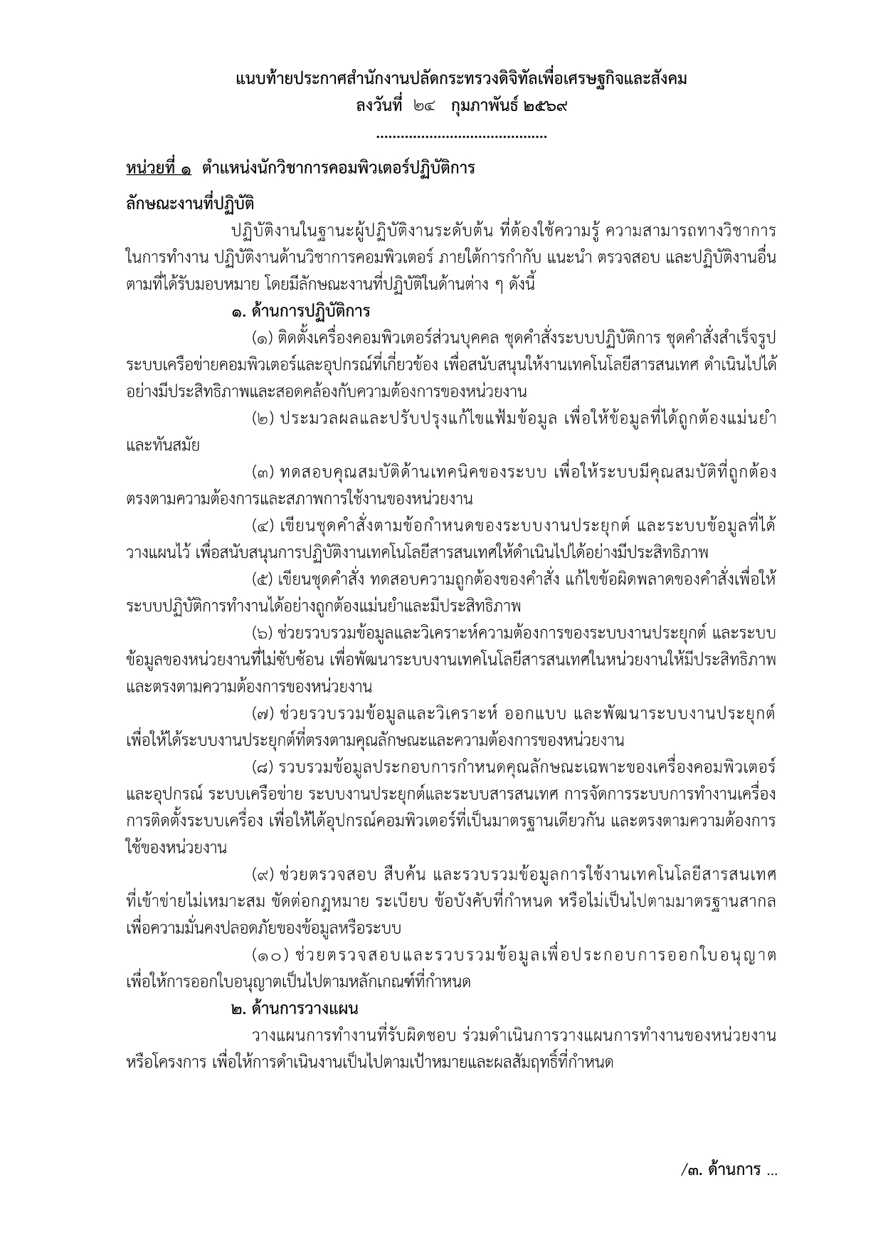 - คลิกที่นี่เพื่ออ่าน ประกาศสำนักงานปลัดกระทรวงดิจิทัลเพื่อเศรษฐกิจและสังคม เรื่อง รับสมัครสอบแข่งขันเพื่อบรรจุและแต่งตั้งบุคคลเข้ารับราชการ ในตำแหน่งนักวิชาการคอมพิวเตอร์ปฏิบัติการ นักวิเคราะห์นโยบายและแผนปฏิบัติการ และเจ้าพนักงานธุรการปฏิบัติงาน