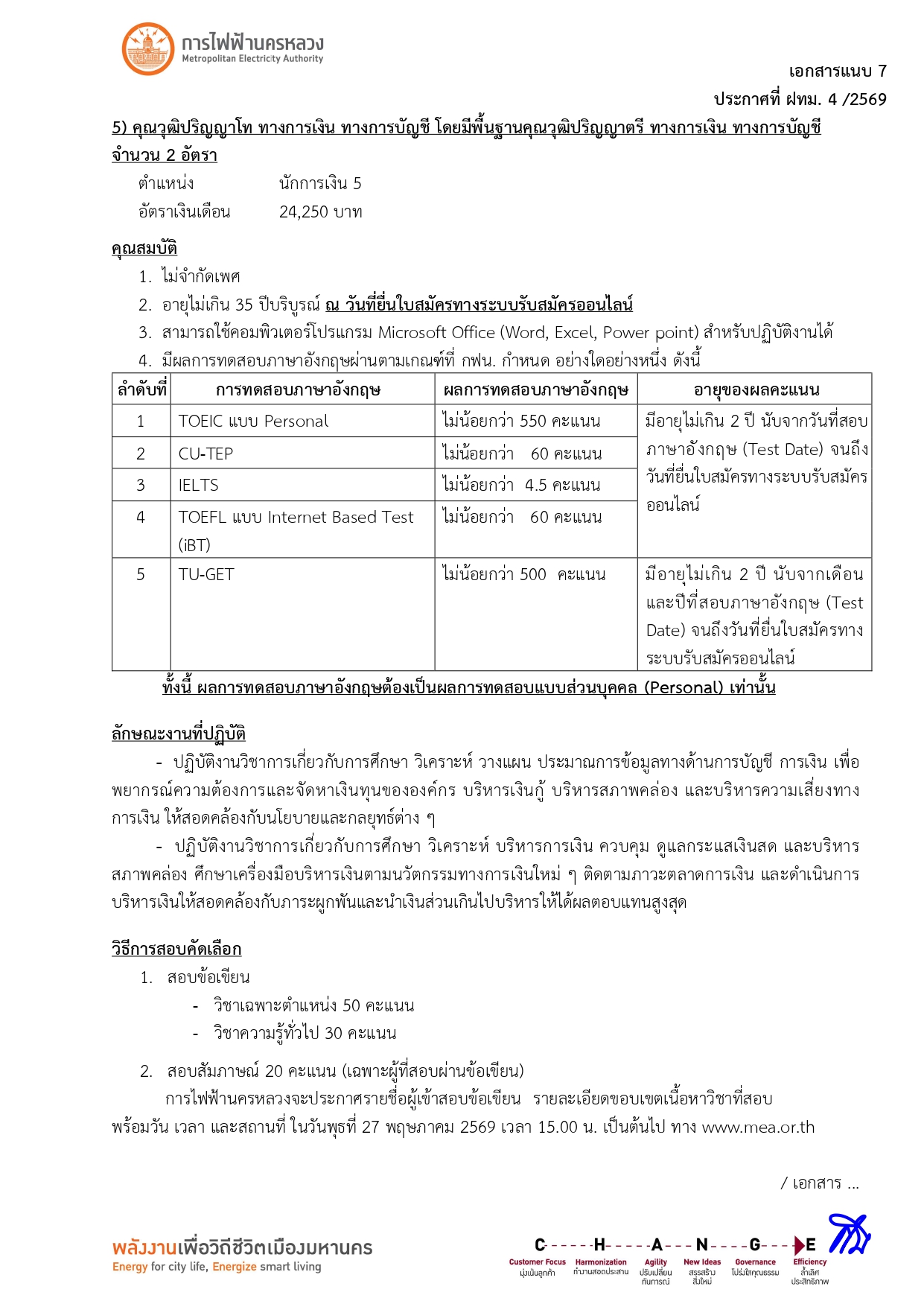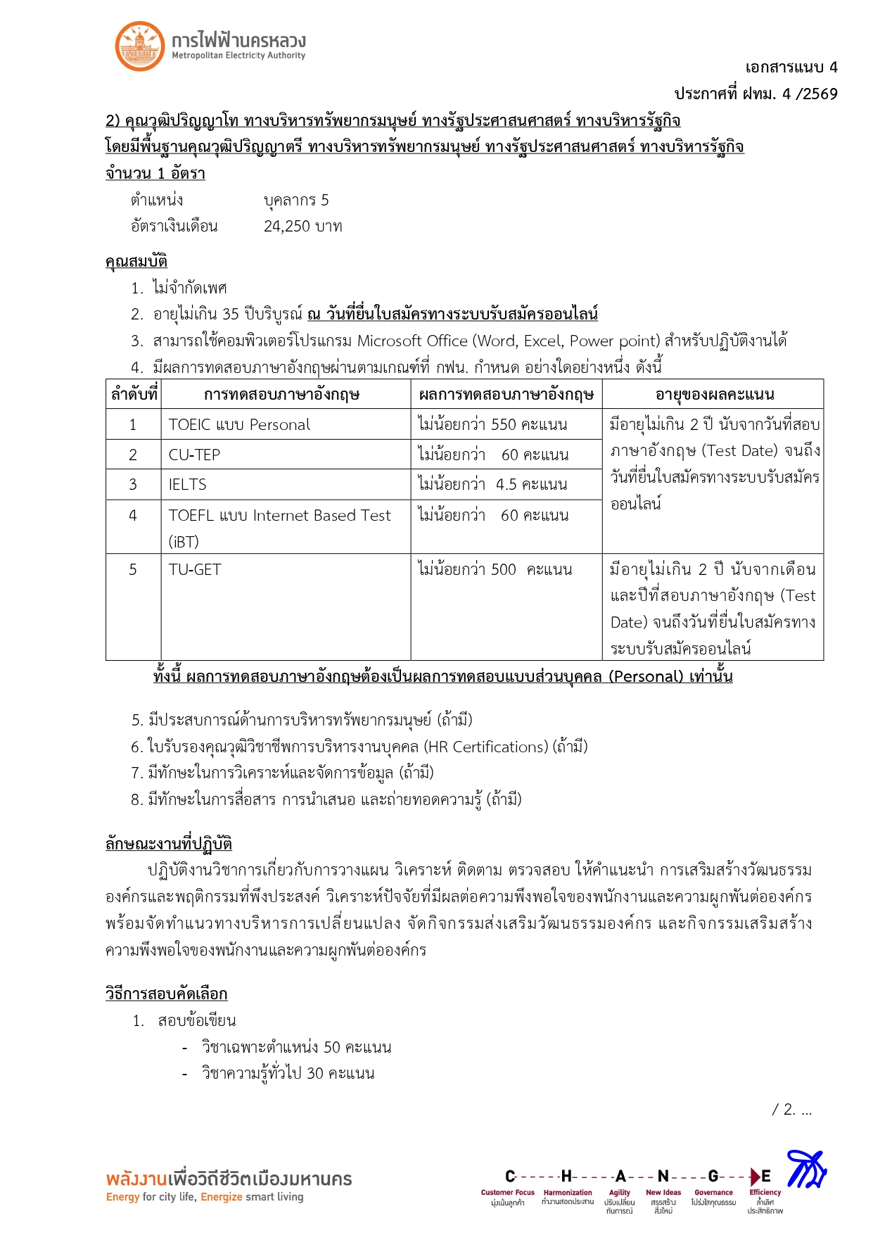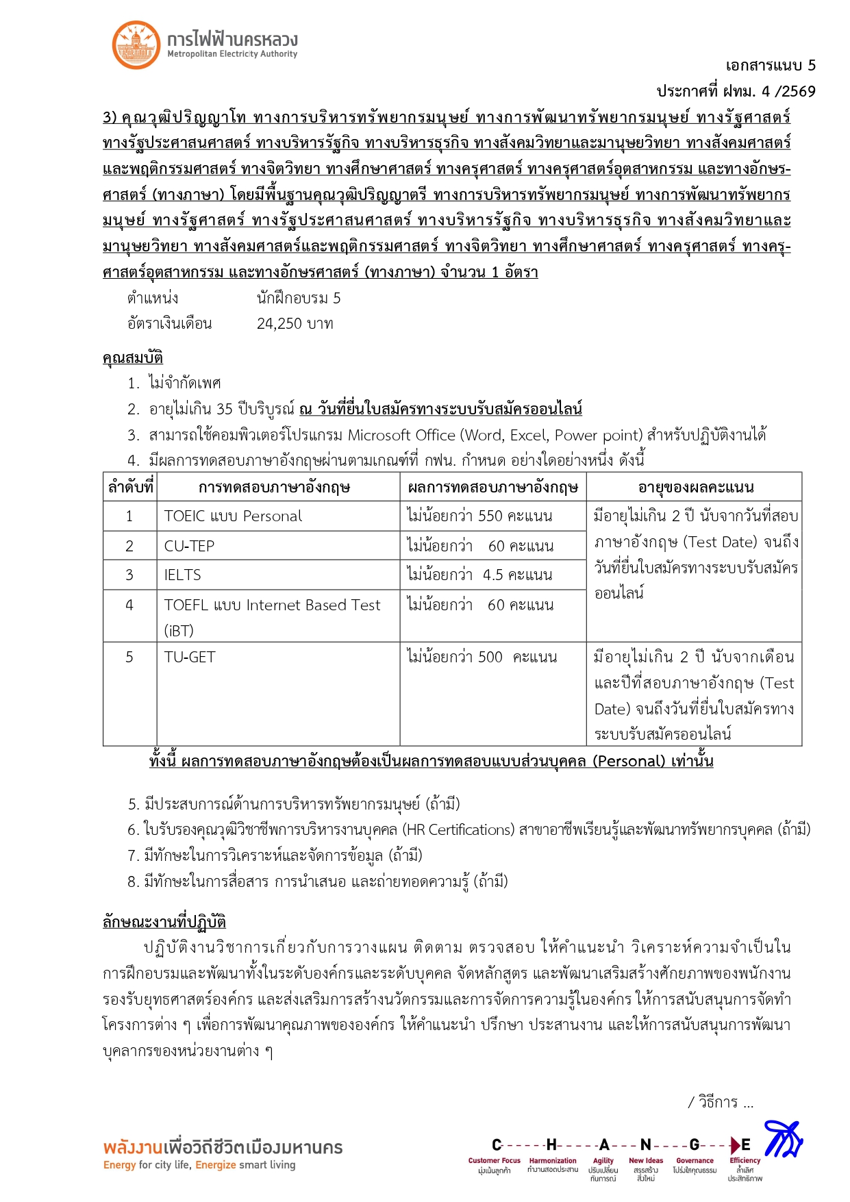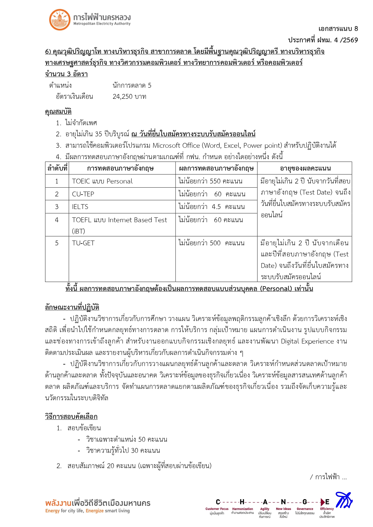 การไฟฟ้านครหลวง เปิดรับสมัครสอบคัดเลือกเพื่อบรรจุเป็นพนักงานประจำปี 2569 จำนวน 206 อัตรา หลายตำแหน่ง / ปวช. ปวส. ป.ตรี หลายสาขา + / สมัคร online 30 เม.ย. – 6 พ.ค. 2569