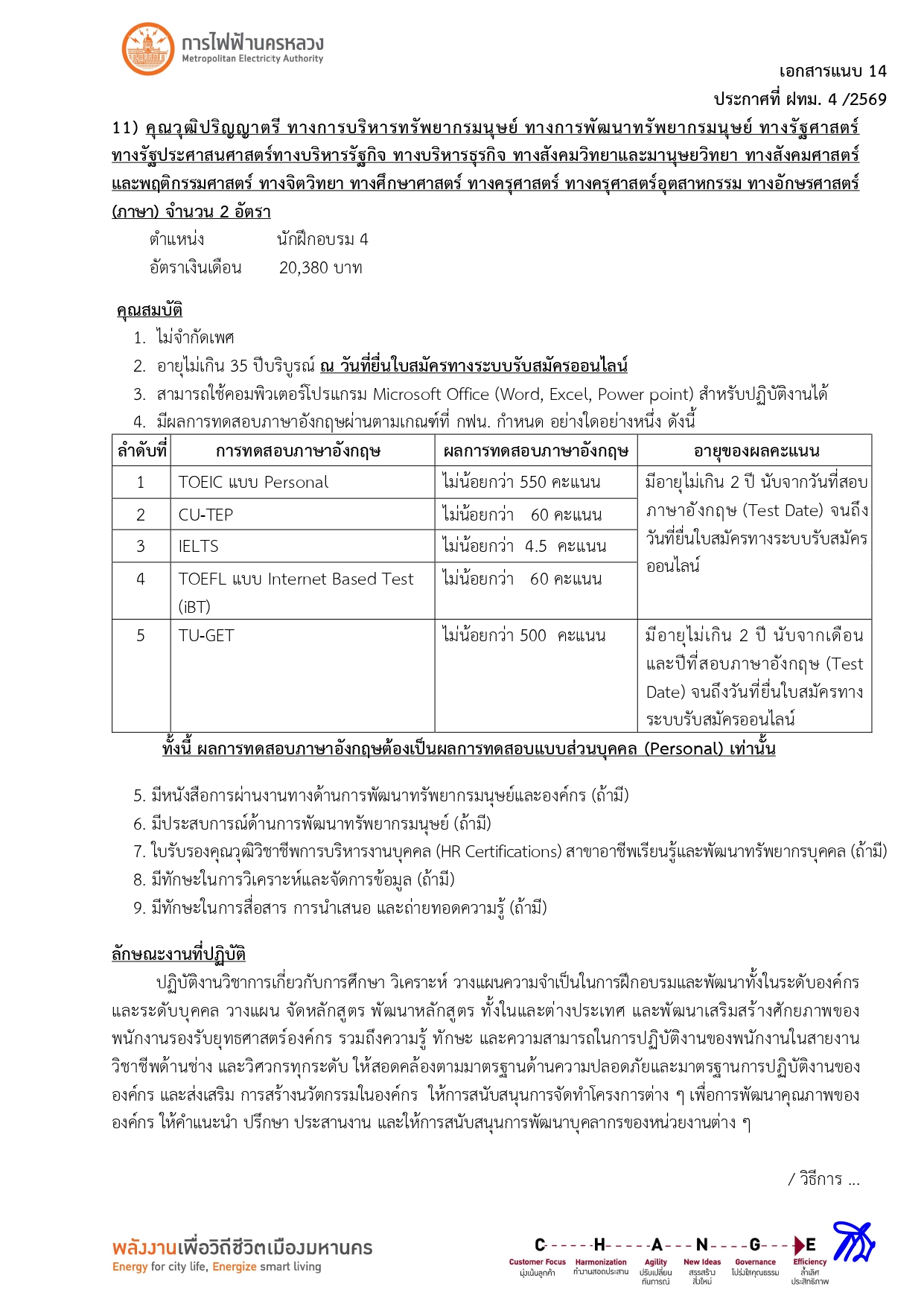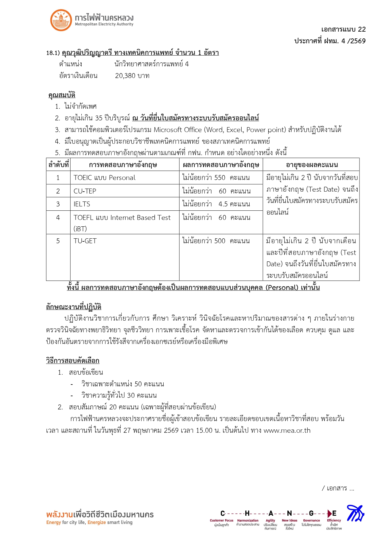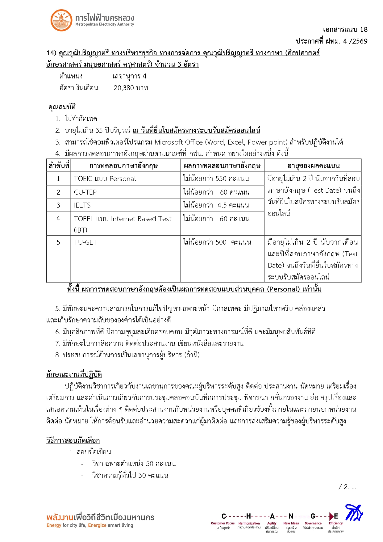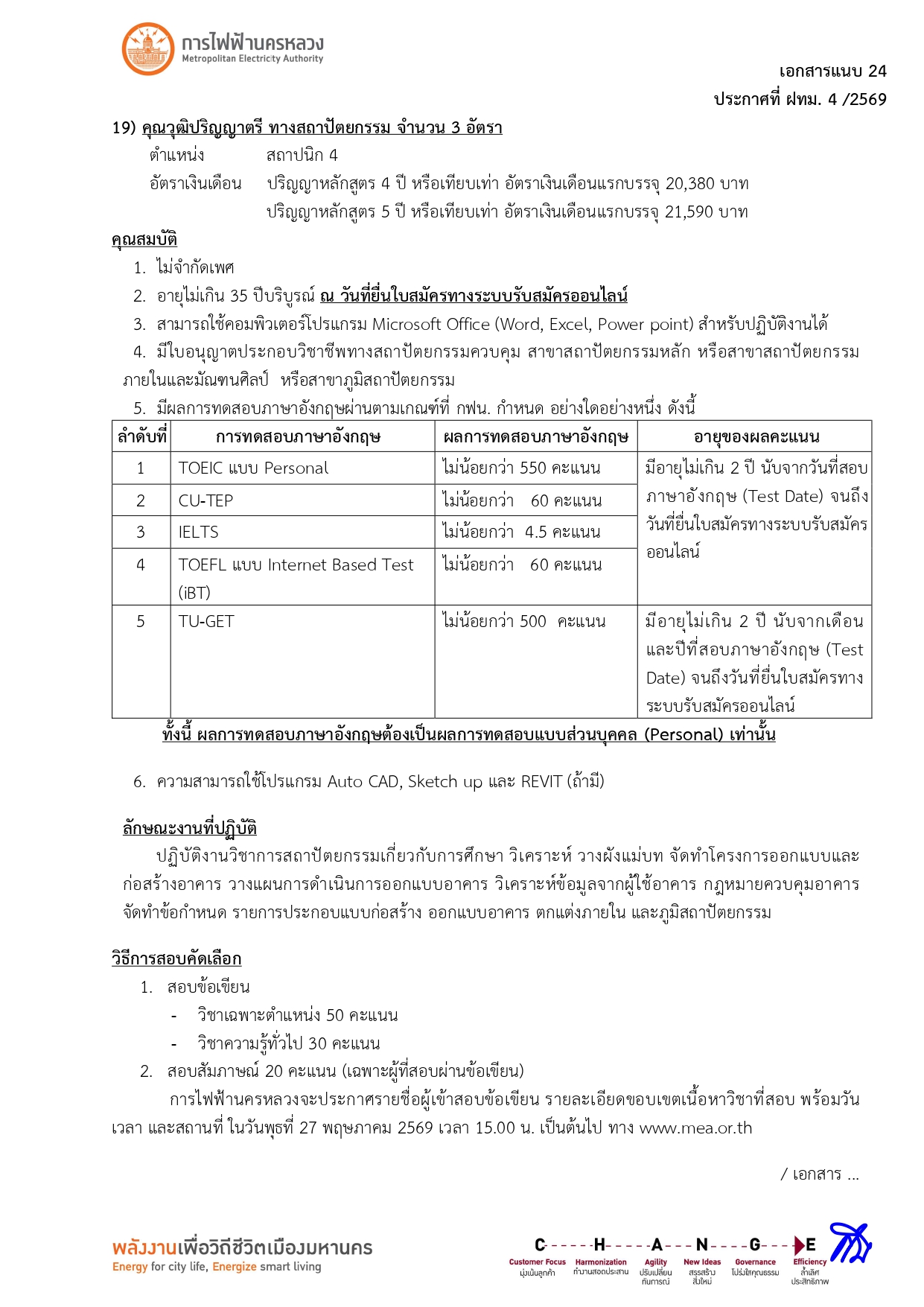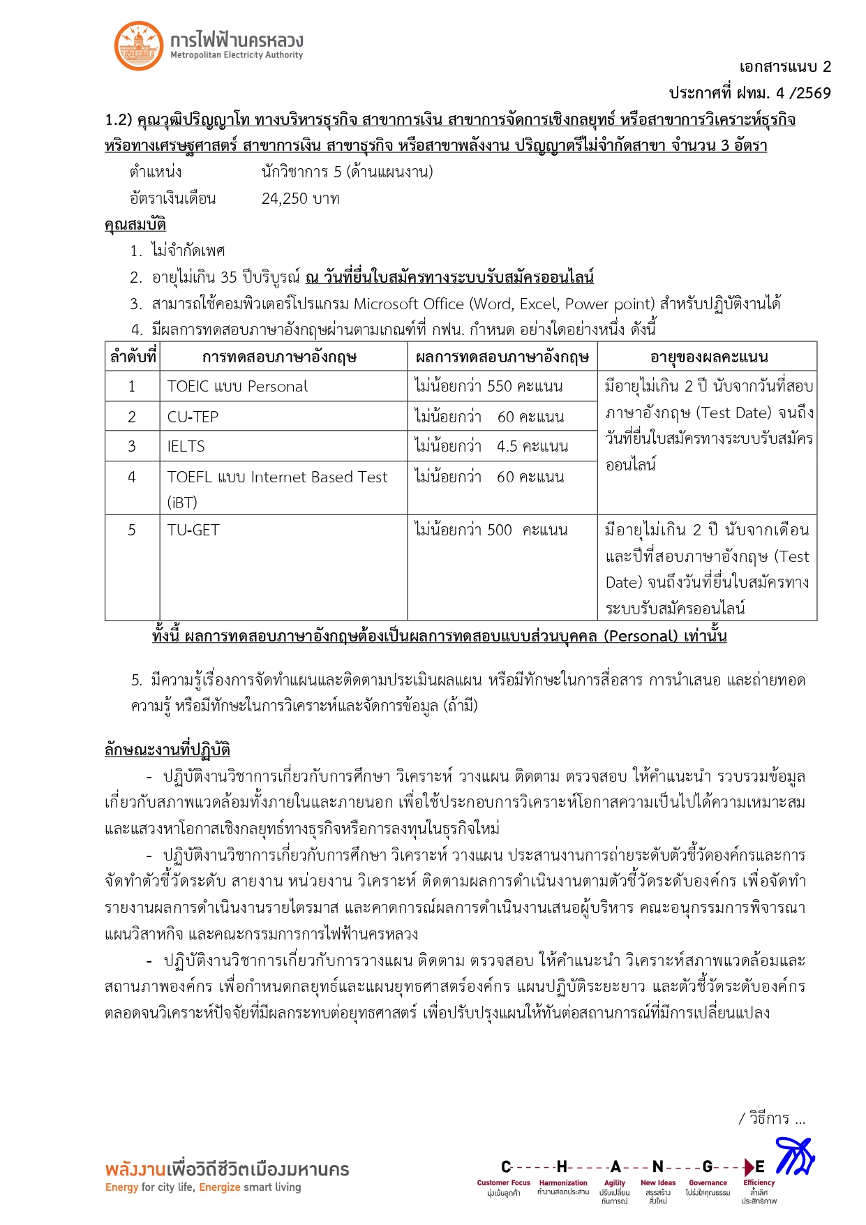การไฟฟ้านครหลวง เปิดรับสมัครสอบคัดเลือกเพื่อบรรจุเป็นพนักงานประจำปี 2569 จำนวน 206 อัตรา หลายตำแหน่ง / ปวช. ปวส. ป.ตรี หลายสาขา + / สมัคร online 30 เม.ย. – 6 พ.ค. 2569