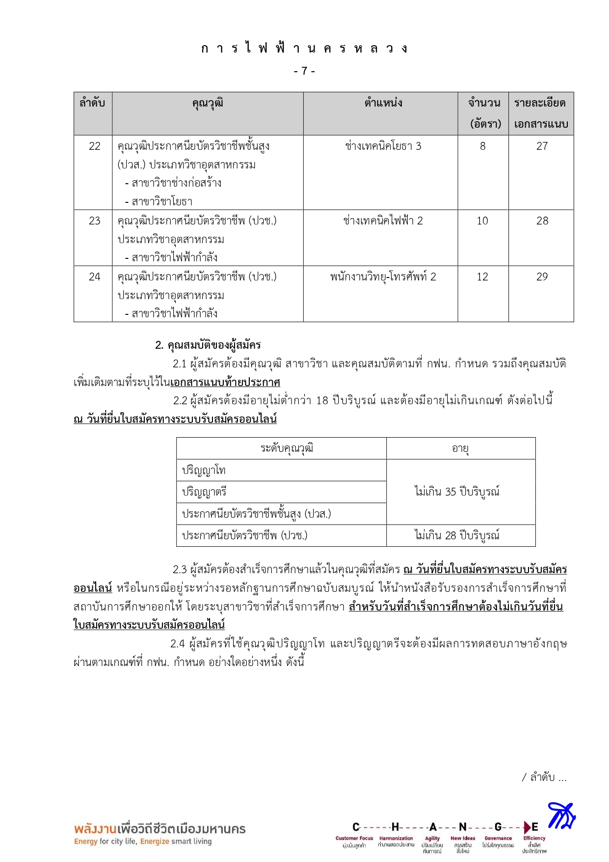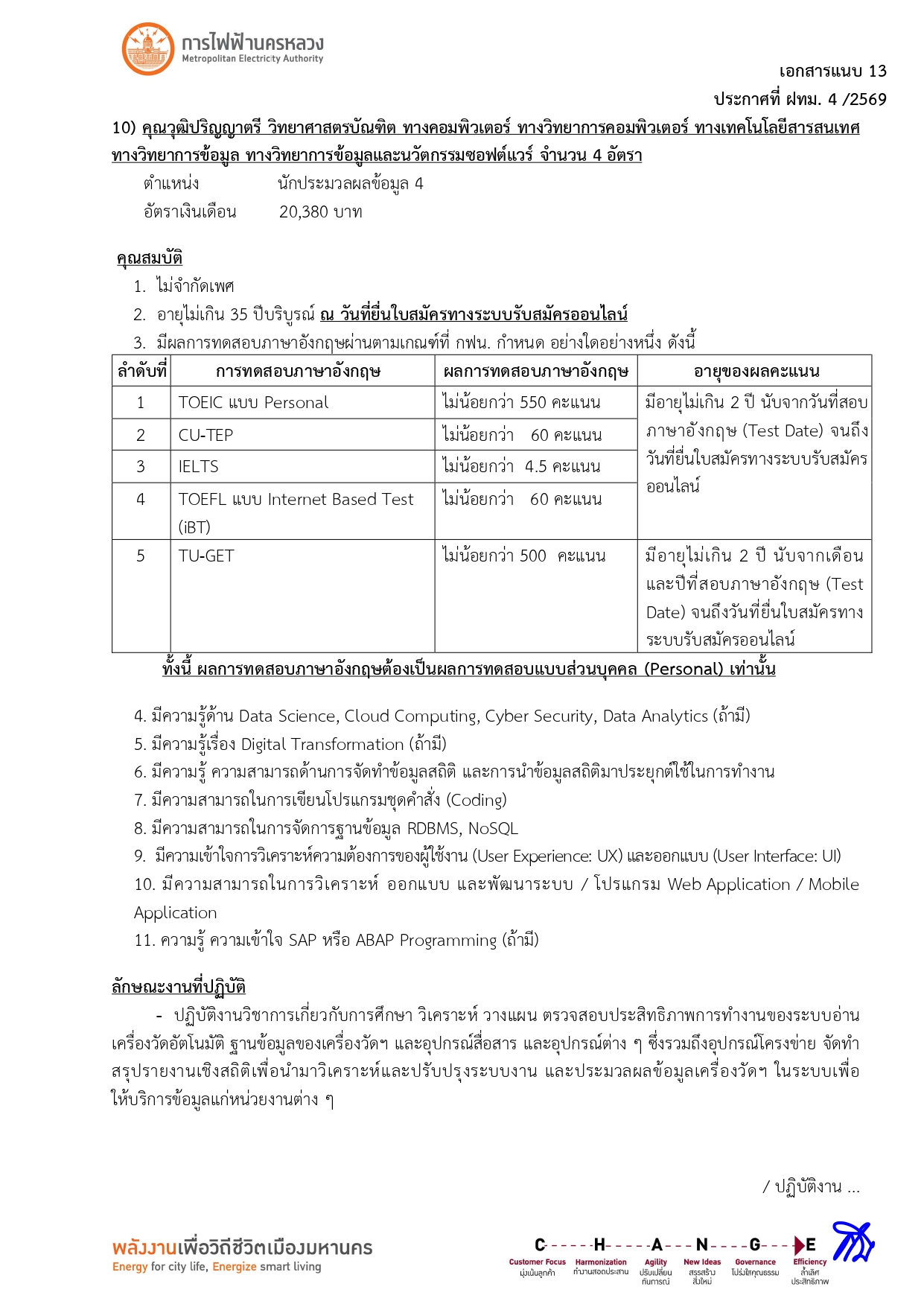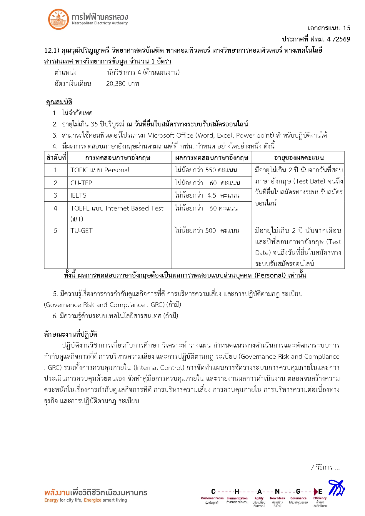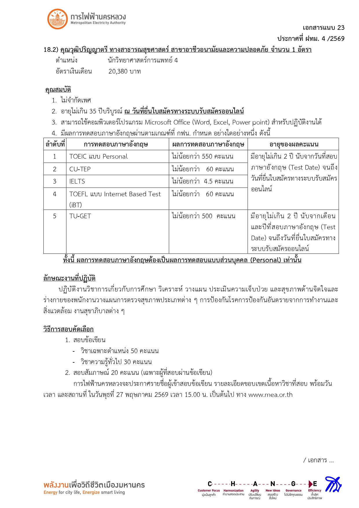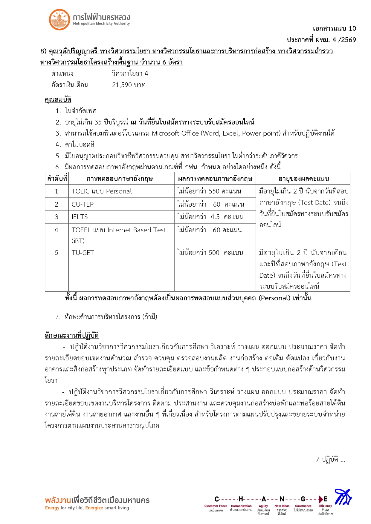การไฟฟ้านครหลวง เปิดรับสมัครสอบคัดเลือกเพื่อบรรจุเป็นพนักงานประจำปี 2569 จำนวน 206 อัตรา หลายตำแหน่ง / ปวช. ปวส. ป.ตรี หลายสาขา + / สมัคร online 30 เม.ย. – 6 พ.ค. 2569