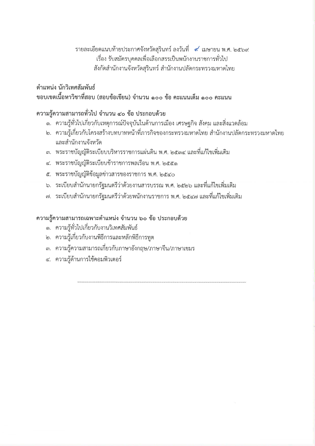 มีความประสงค์จะรับสมัครบุคคลเพื่อจัดจ้างเป็นพนักงานราชการทั่วไป ในตำแหน่งนักวิเทศสัมพันธ์ โดยมีรายละเอียดดังนี้