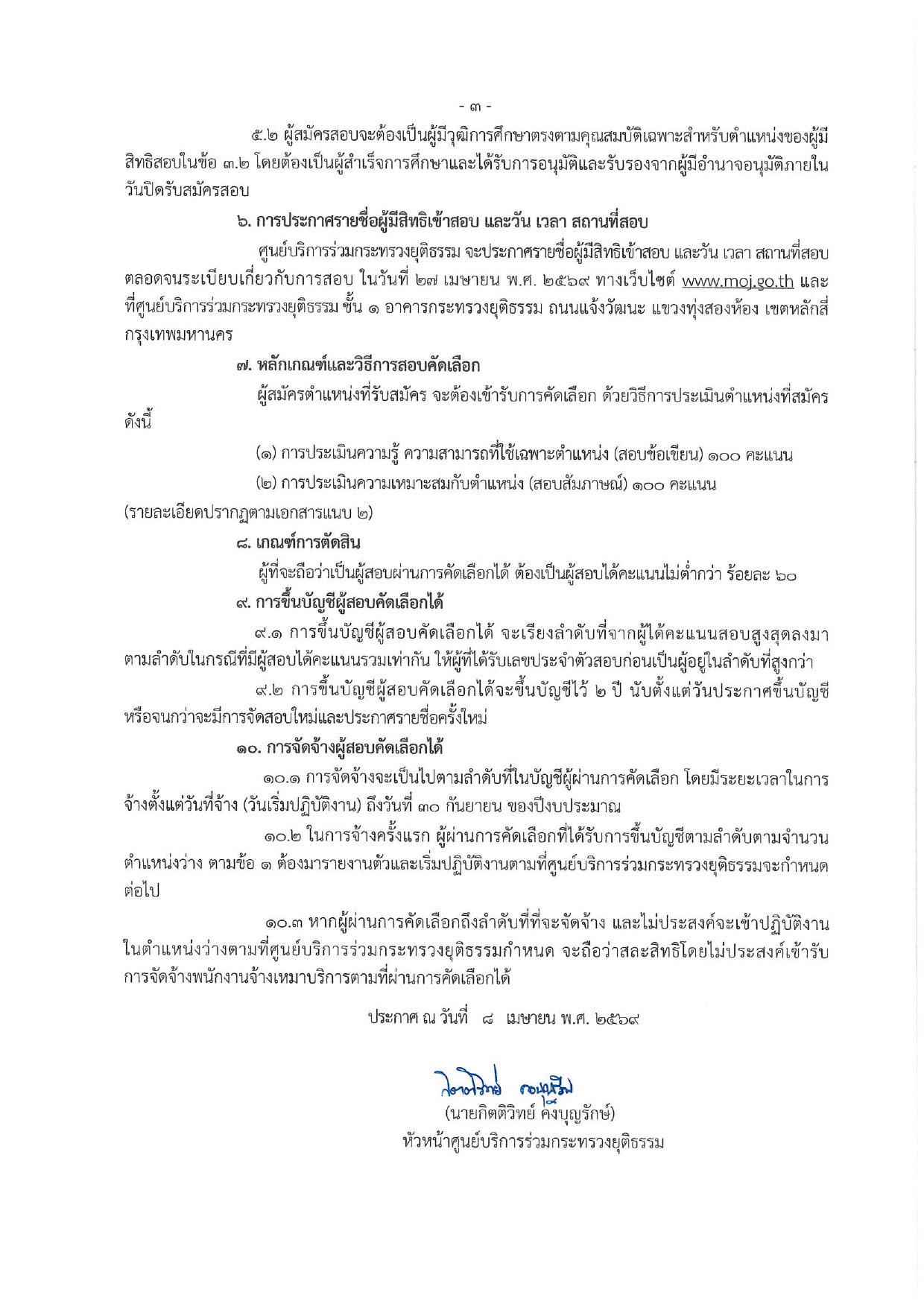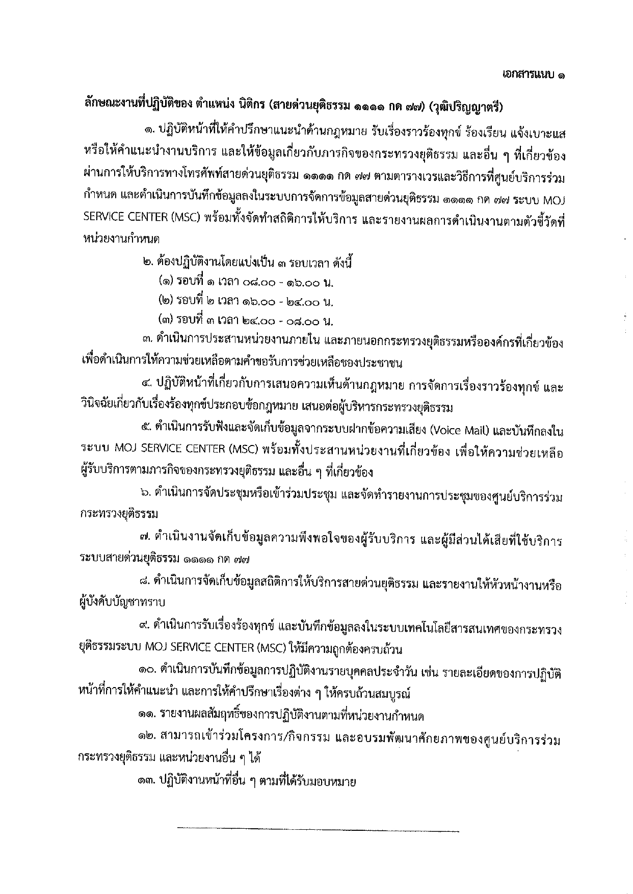 คลิกที่นี่เพื่ออ่าน ประกาศศูนย์บริการร่วมกระทรวงยุติธรรม สำนักงานปลัดกระทรวงยุติธรรม เรื่อง รับสมัครคัดเลือกเพื่อสรรหาบุคคลเป็นพนักงานจ้างเหมาบริการ ตำแหน่ง นิติกร (สายด่วนยุติธรรม ๑๑๑๑ กด ๗๗)
