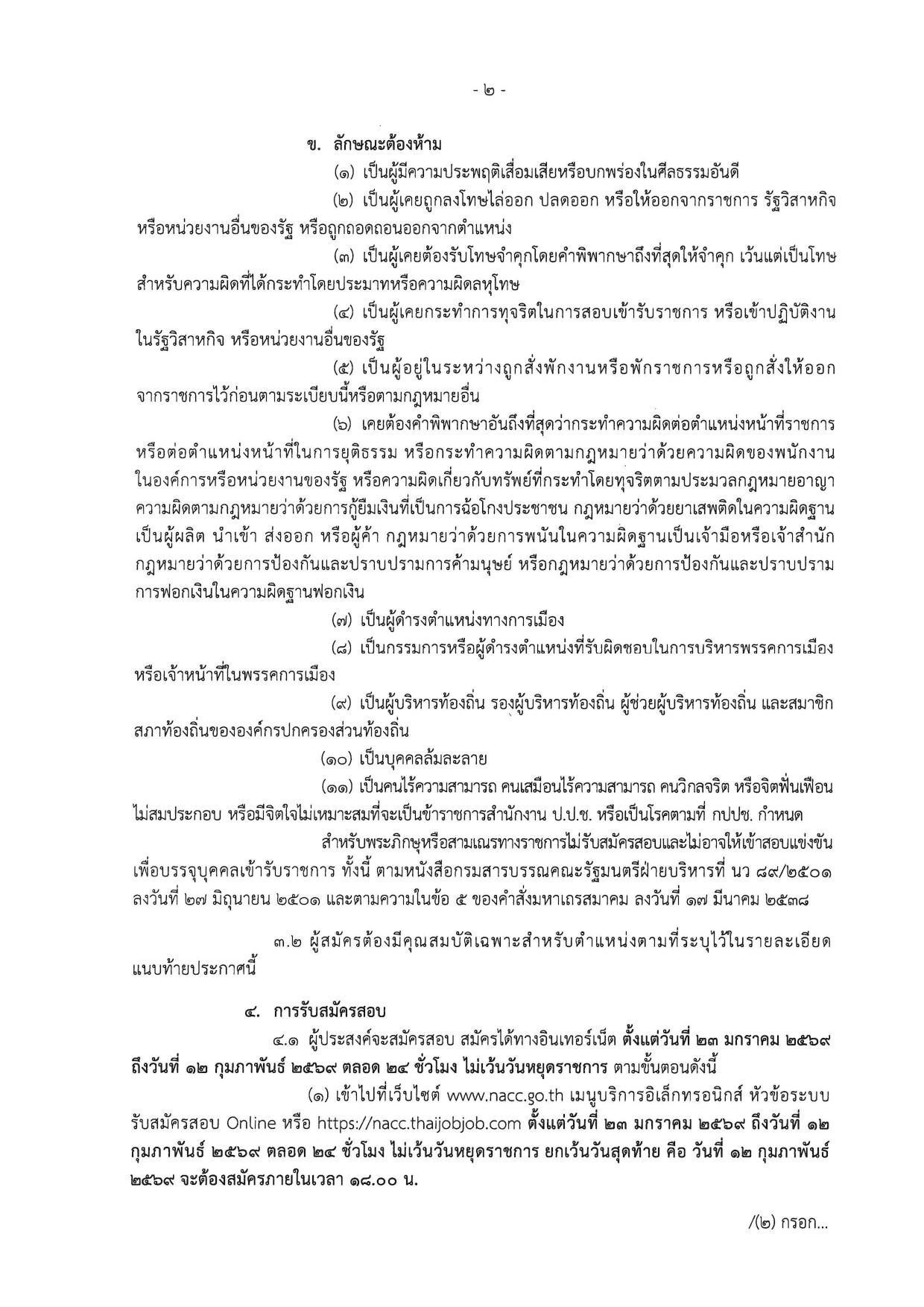สำนักงาน ป.ป.ช. รับสมัครสอบแข่งขันเพื่อบรรจุและแต่งตั้งบุคคลเข้ารับราชการ 97 อัตรา / ปวส. และ ป.ตรี หลายสาขา / เงินเดือน 18150 / สมัคร online 23 มกราคม – 12 กุมภาพันธ์ 2569