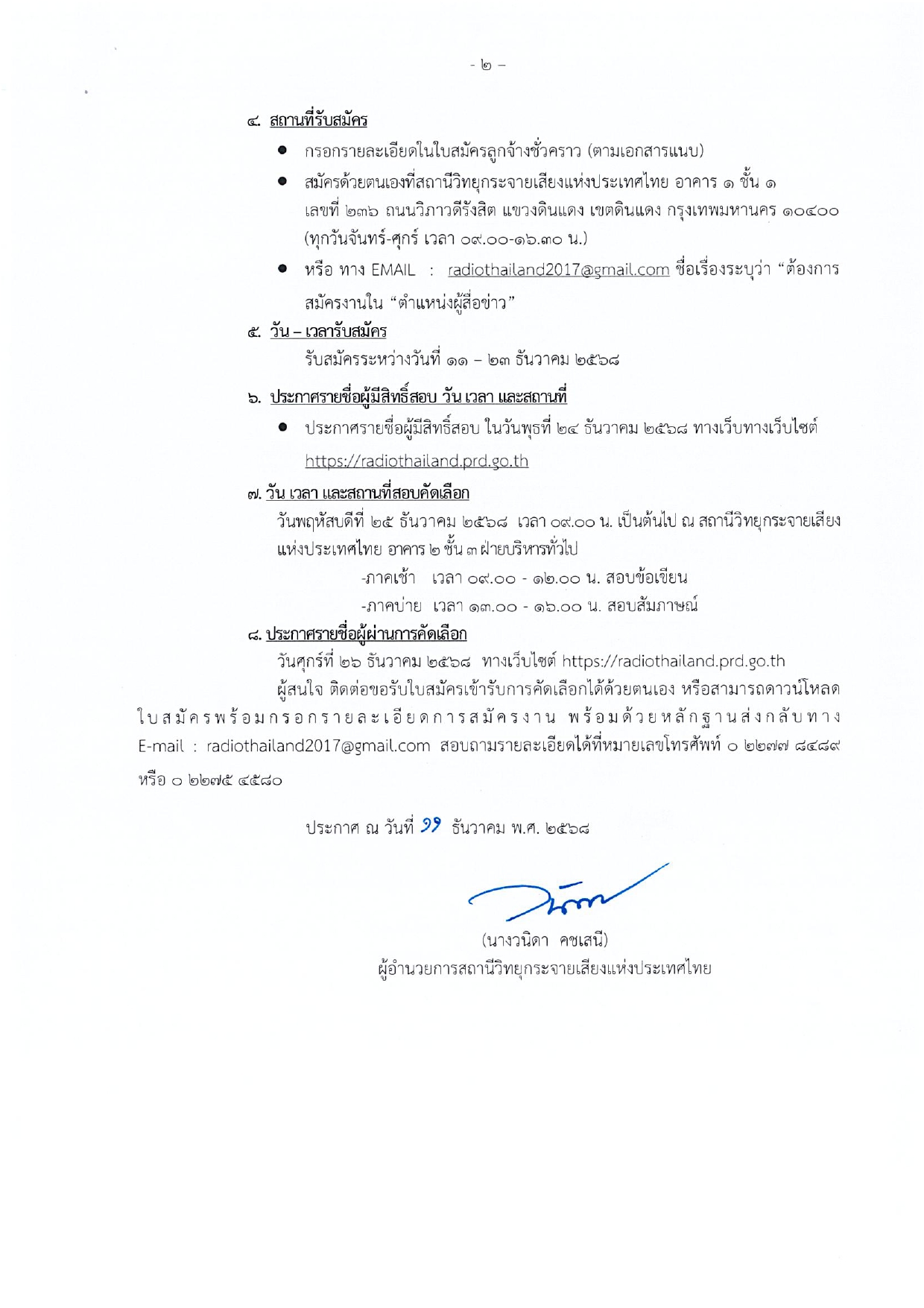 เรื่อง รับสมัครคัดเลือกลูกจ้างชั่วคราว ตำแหน่งผู้สื่อข่าว จำนวน 2 อัตรา