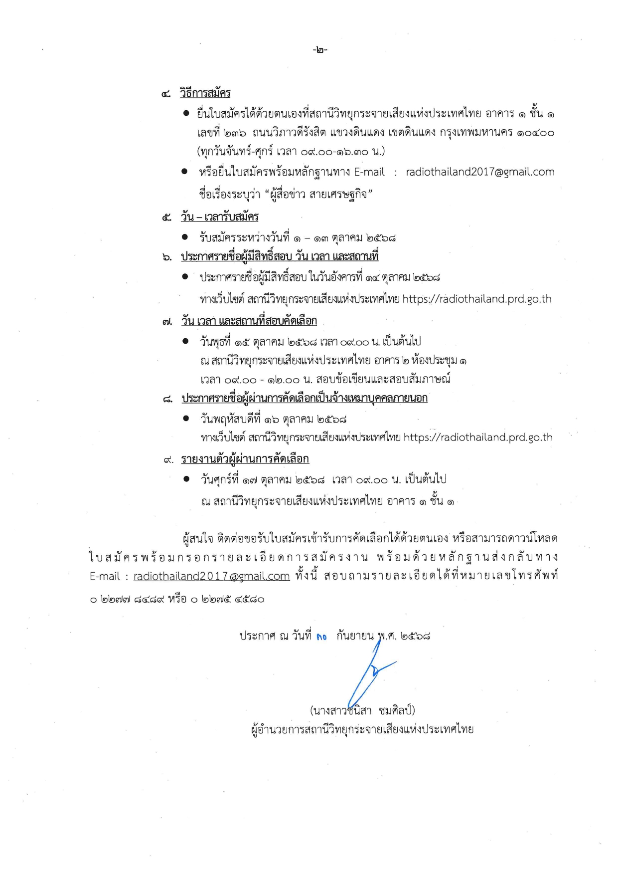 ประกาศรายชื่อผู้ผ่านการคัดเลือก: วันพฤหัสบดีที่ 16 ตุลาคม 2568 ทางเว็บไซต์ https://radiothailand.prd.go.th